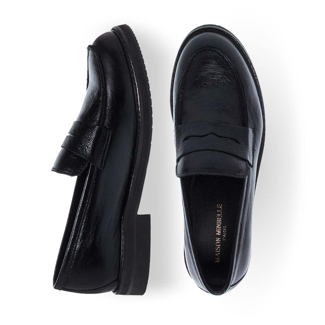 Women''s leather moccasins by Maison Minrelle. Leather moccasins by Maison Minrelle featuring a square toe and minimal design. They combine timeless elegance and comfort, ideal for office or casual chic looks.