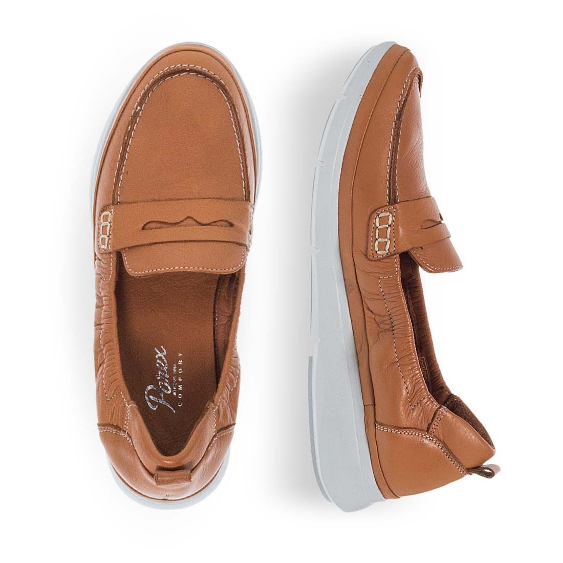 Combine style and comfort wearing these leather moccasins by Parex. A timeless design with flexible sole, stable low heel and comfortable insole. You won''t want to take them off. Available in black and tan color.