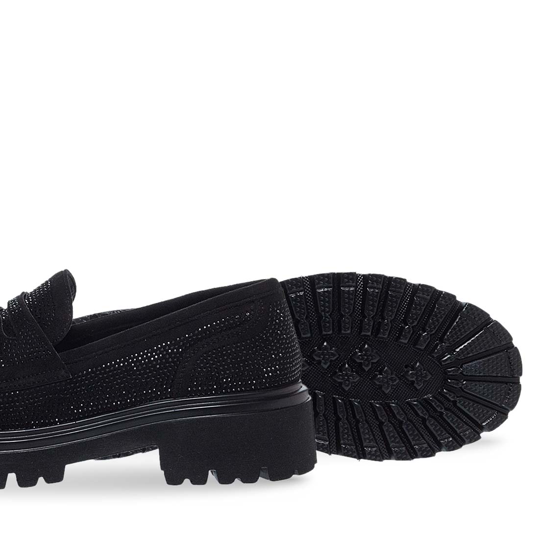 Modern moccasins for women. Suede texture and rhinestone detail. Comfortable insole. Take stylish and comfortable steps in these fashionable shoes.