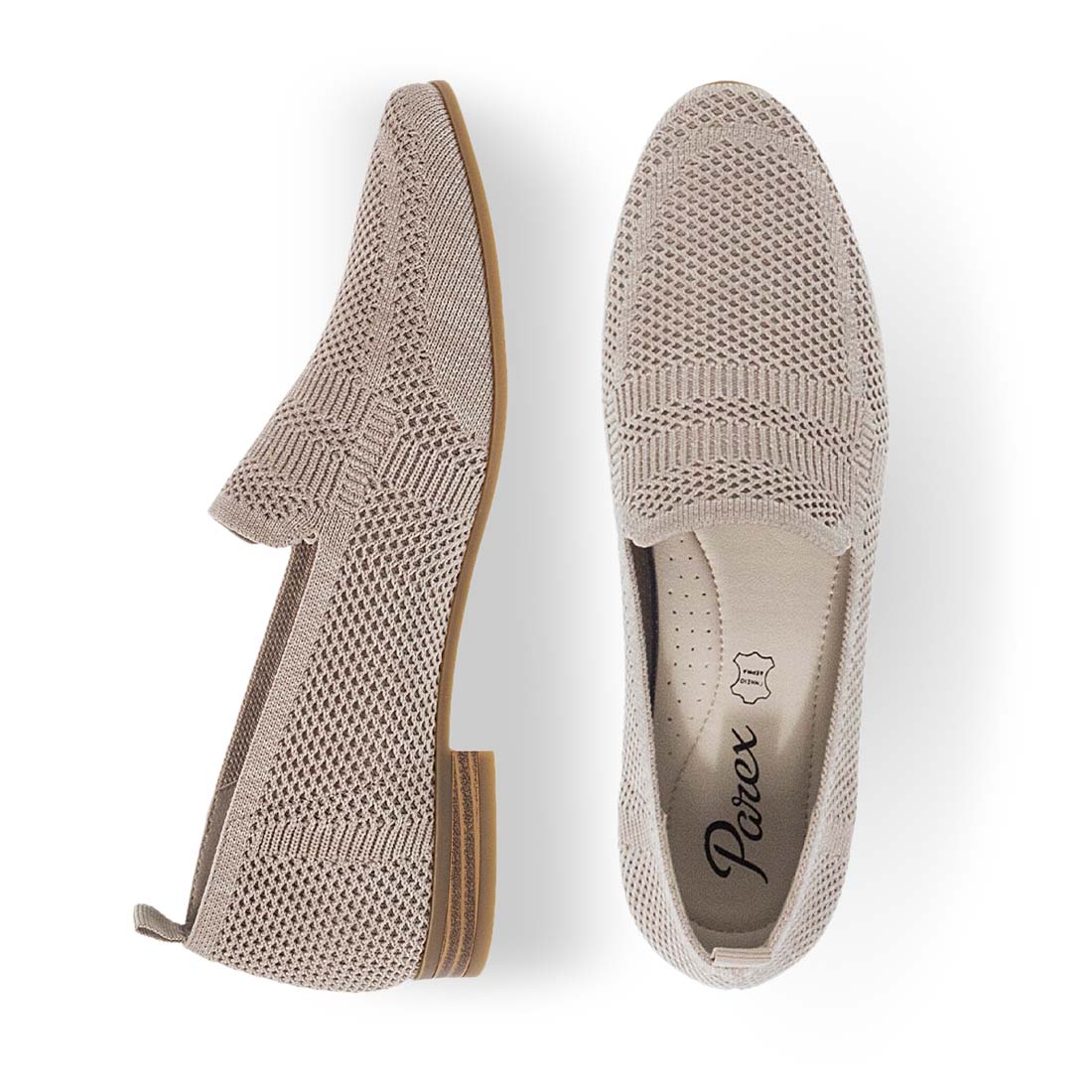 Elegant moccasins Parex for women. Made of soft texture. This design is available in 2 pastel colors. Update your spring outfit and mood! Pull tab detail. Easy to fit.