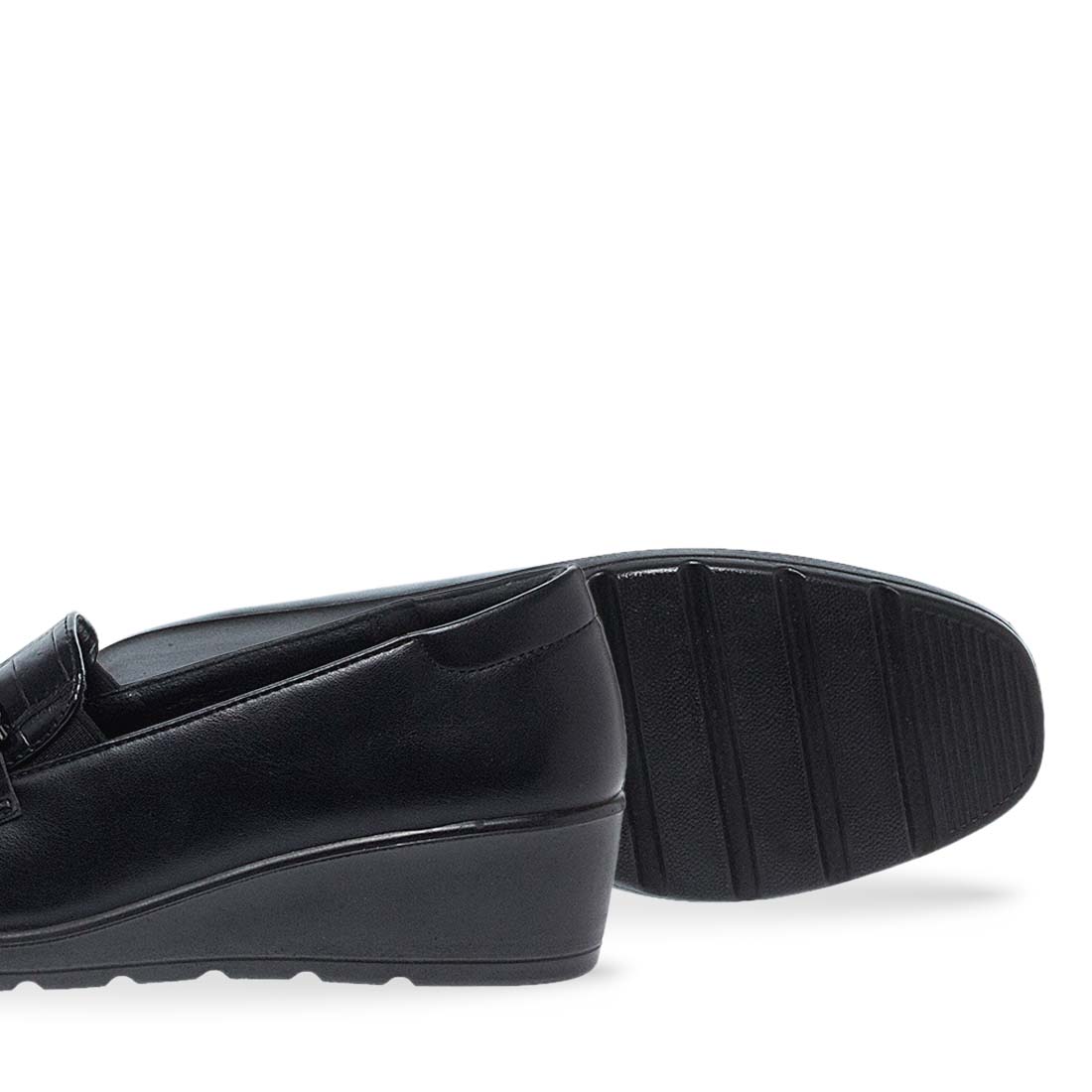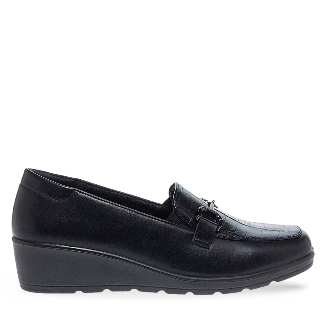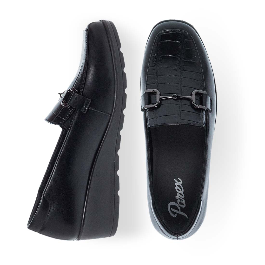Women''s moccasins by Parex. Women’s black moccasins by Parex with quilted detail and buckle, blending classic design with modern comfort. "Infuse" technology. Embeds lightness, comfort, and durability into the shoe''s core, ensuring flexibility and performance are integral to its design.