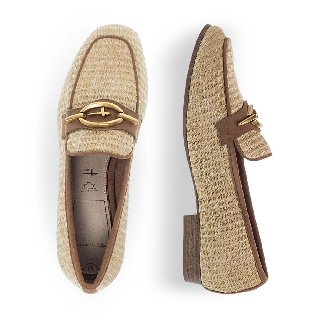 Comfortable moccasins Tamaris for women. Made of faux leather and straw. Metallic detail on the upper. Ideal for your everyday life. Easy apaplication and soft insole.