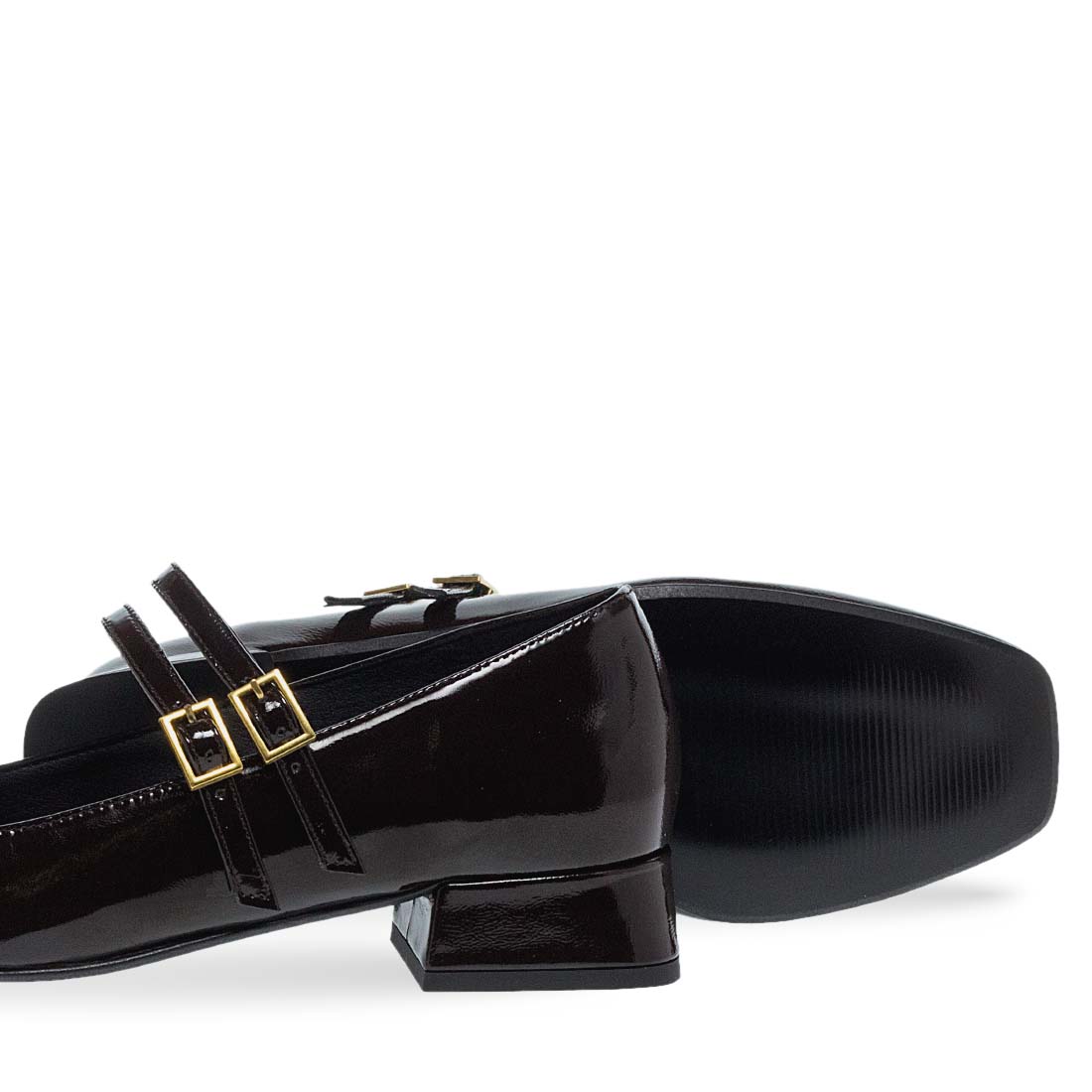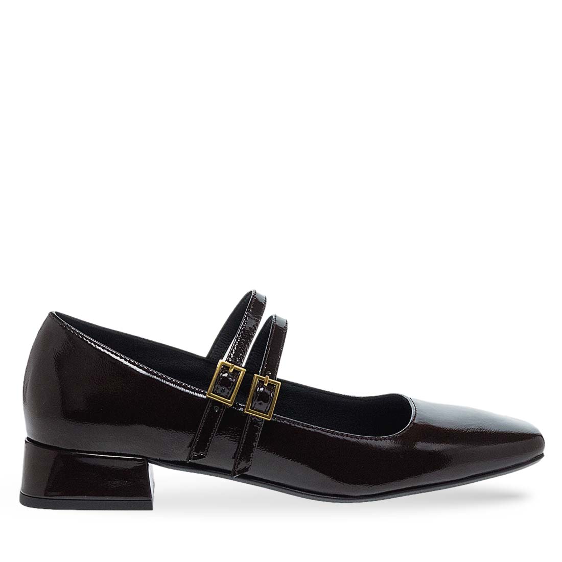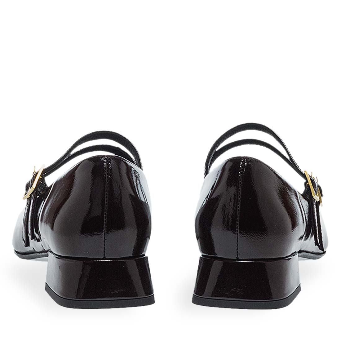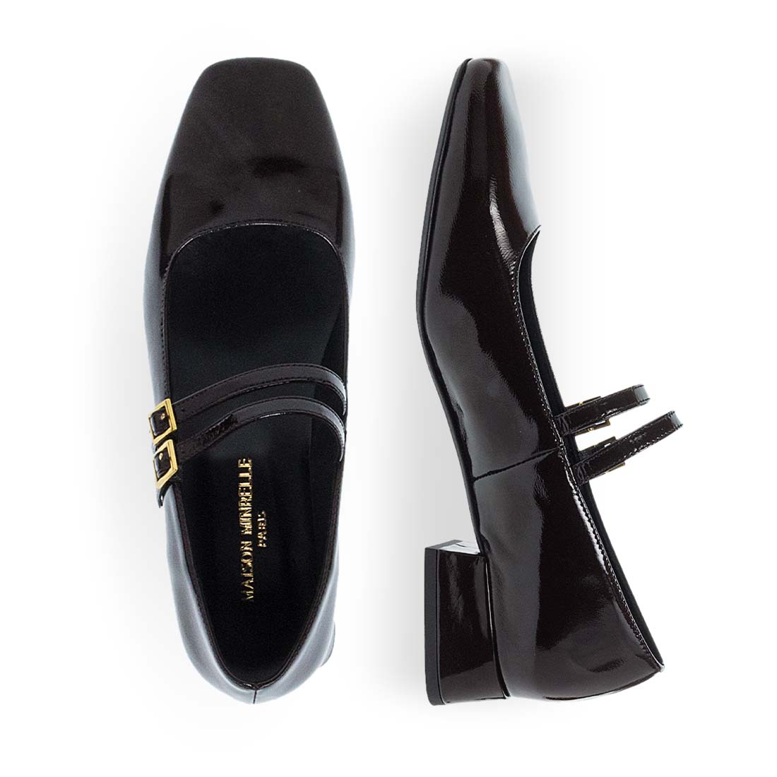 Women''s leather mary jane shoes by Maison Minrelle. Black Mary Jane heels with double buckle and square heel.