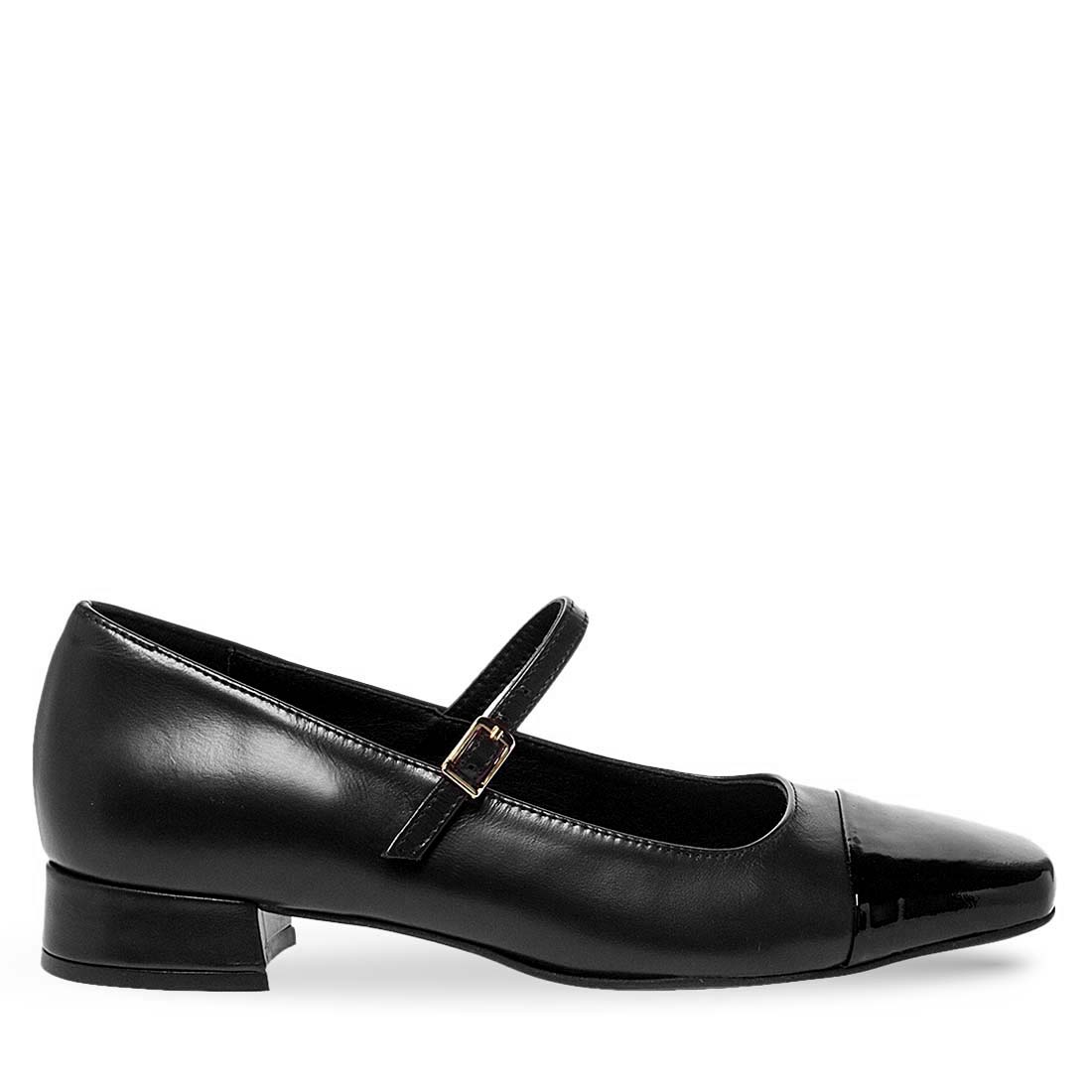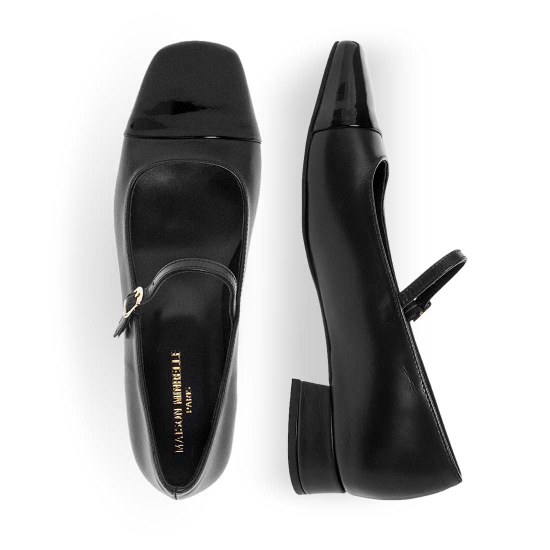 Meet elegance and sophistication with these low heeled Mary Jane shoes by Maison Minrelle. A comfortable, leather pair with adjustable strap and square toe in patent leather.