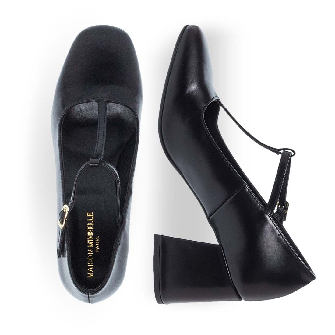 Looking for an elegant, classic and comfortable pair of shoes for this season? Try these Maison Minrelle pumps in Mary Jane style with adjustable t-bar strap. Leather pumps with block heel and square toe shape.