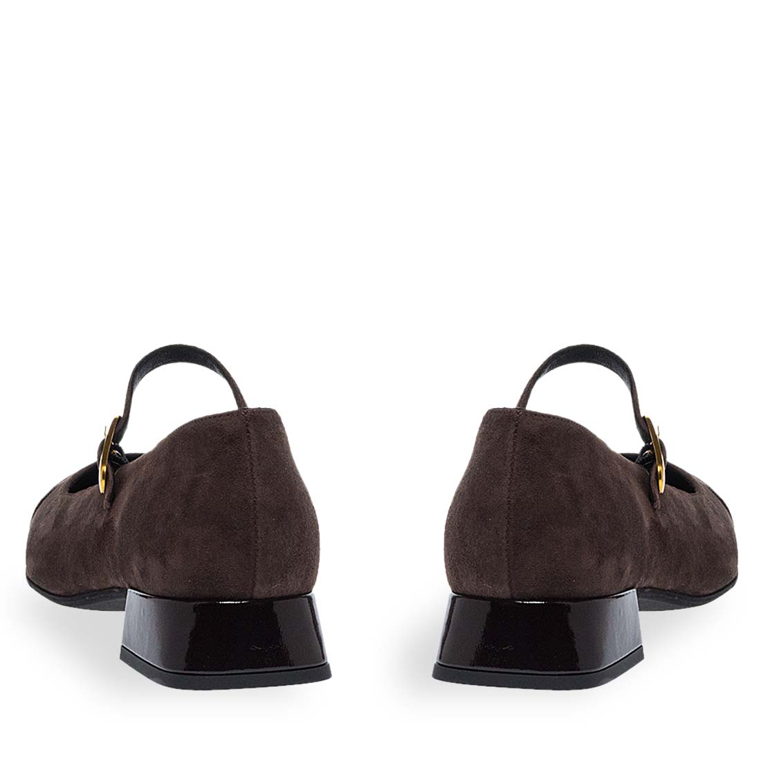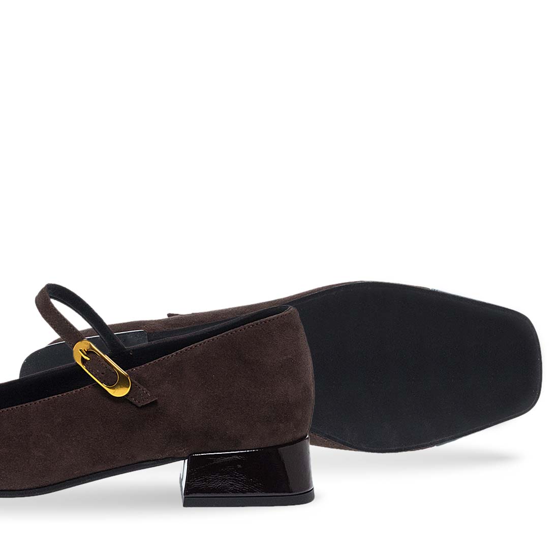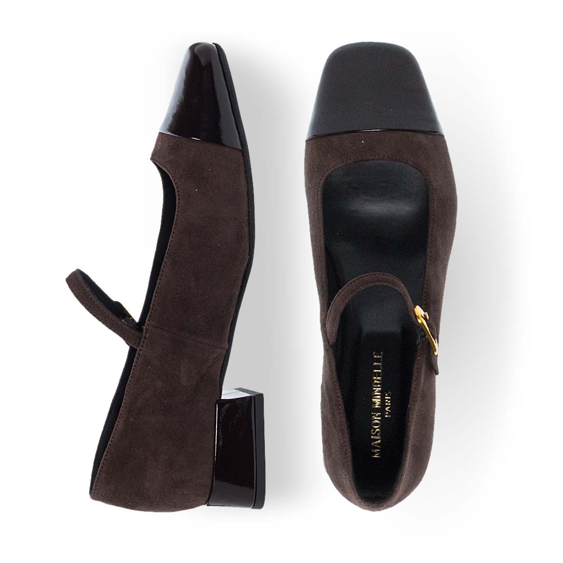 Women''s leather mary jane shoes by Maison Minrelle. Women’s black leather suede Mary Jane shoes with square toe and block heel.