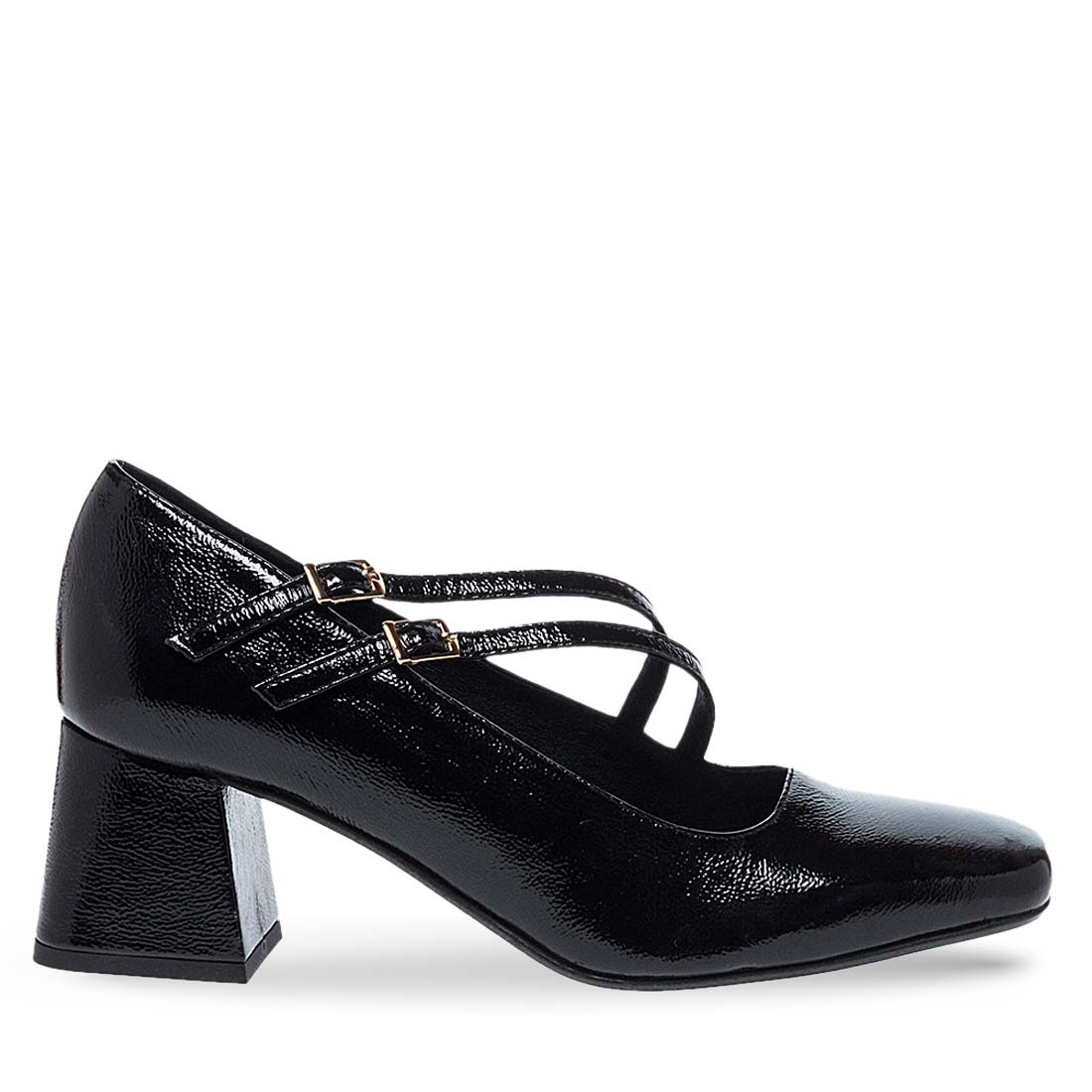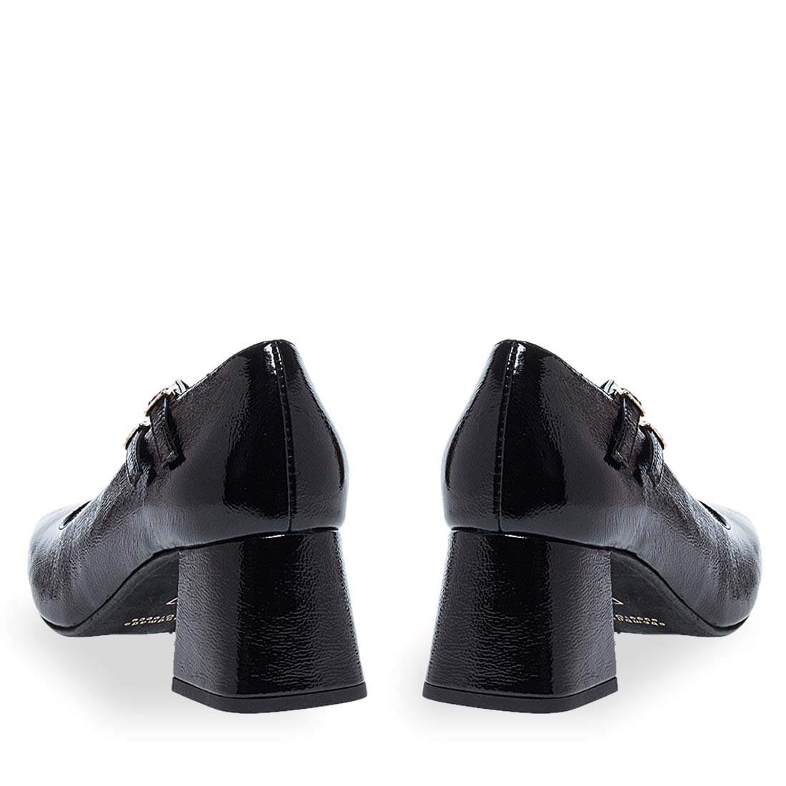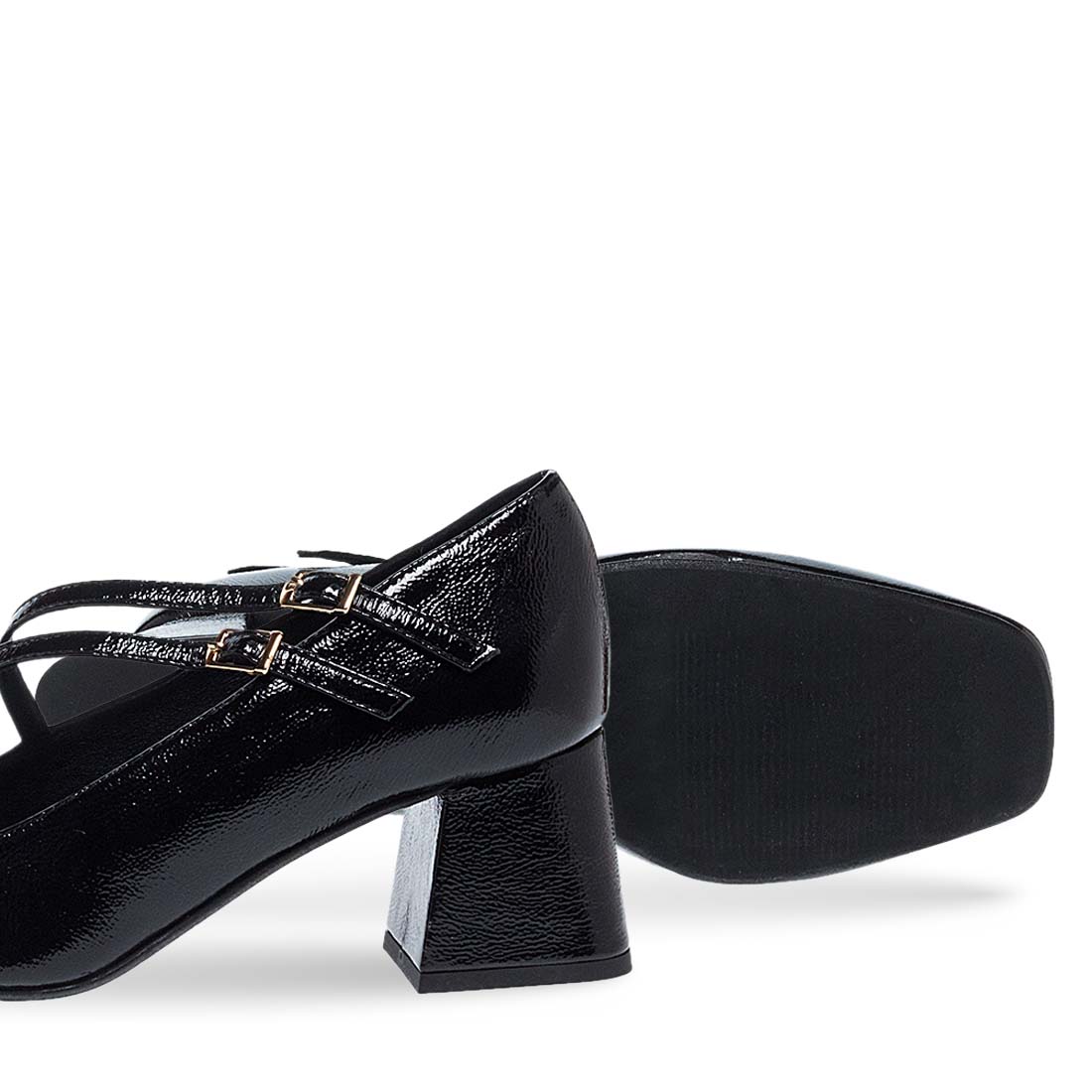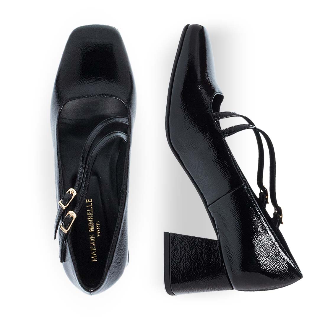 Women''s leather mary jane shoes by Maison Minrelle. Black leather patent Mary Jane shoes with block heel and double strap.