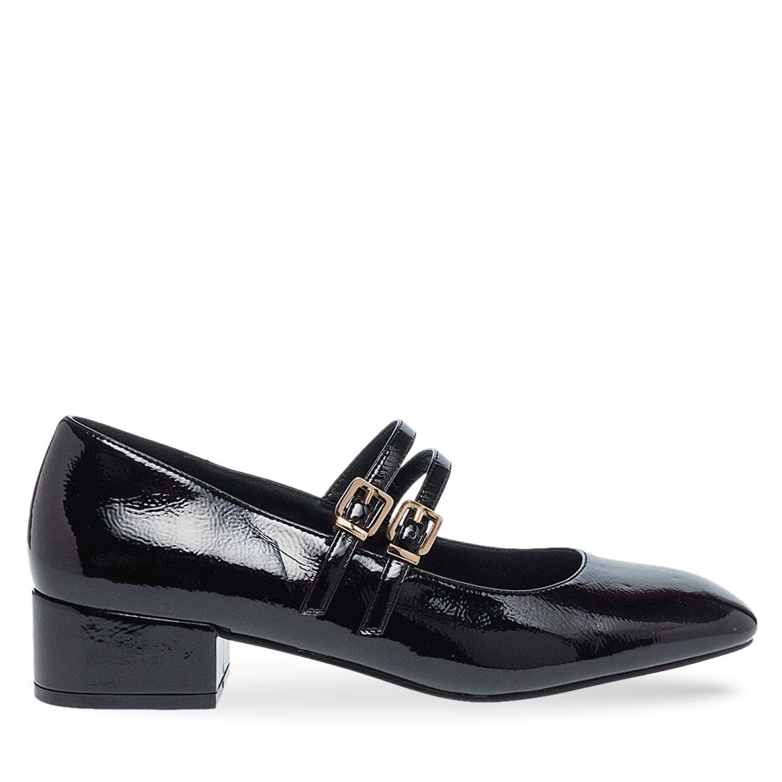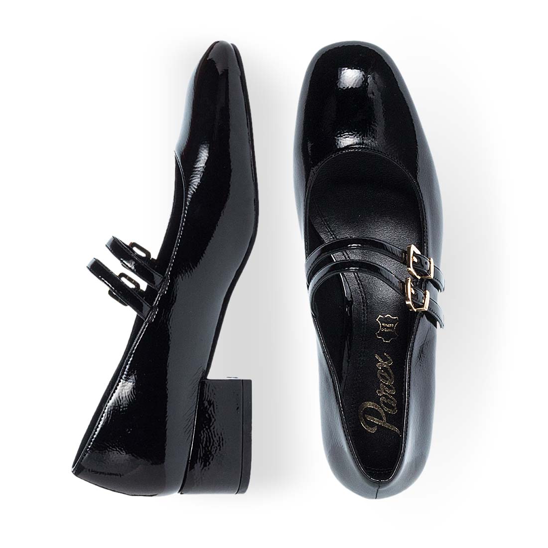 Women''s Mary Jane shoes by Parex. Elegant women’s black leather Mary Jane shoes with low block heel and double buckle straps. Perfect for office wear, offering both comfort and timeless style.