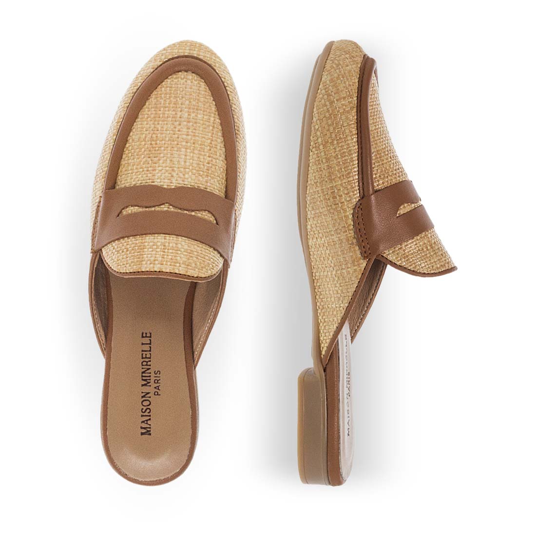 Women''s Mules Maison Minrelle. Woven-texture mules with leather trim – perfect for summer styling.