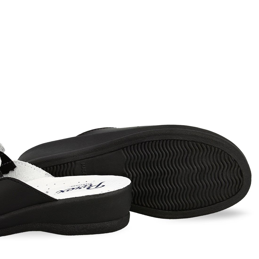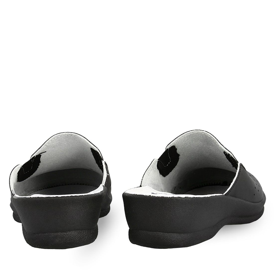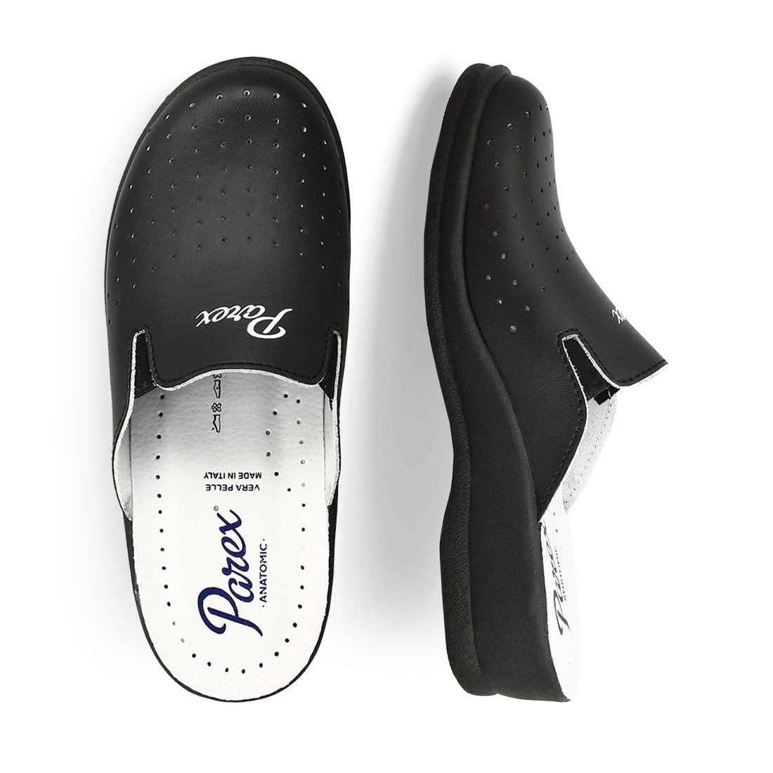 These anatomic leather mules are the best choice for those looking for comfort and lightweight shoes. This leather design is set on a non slip sole and leather slipsole.