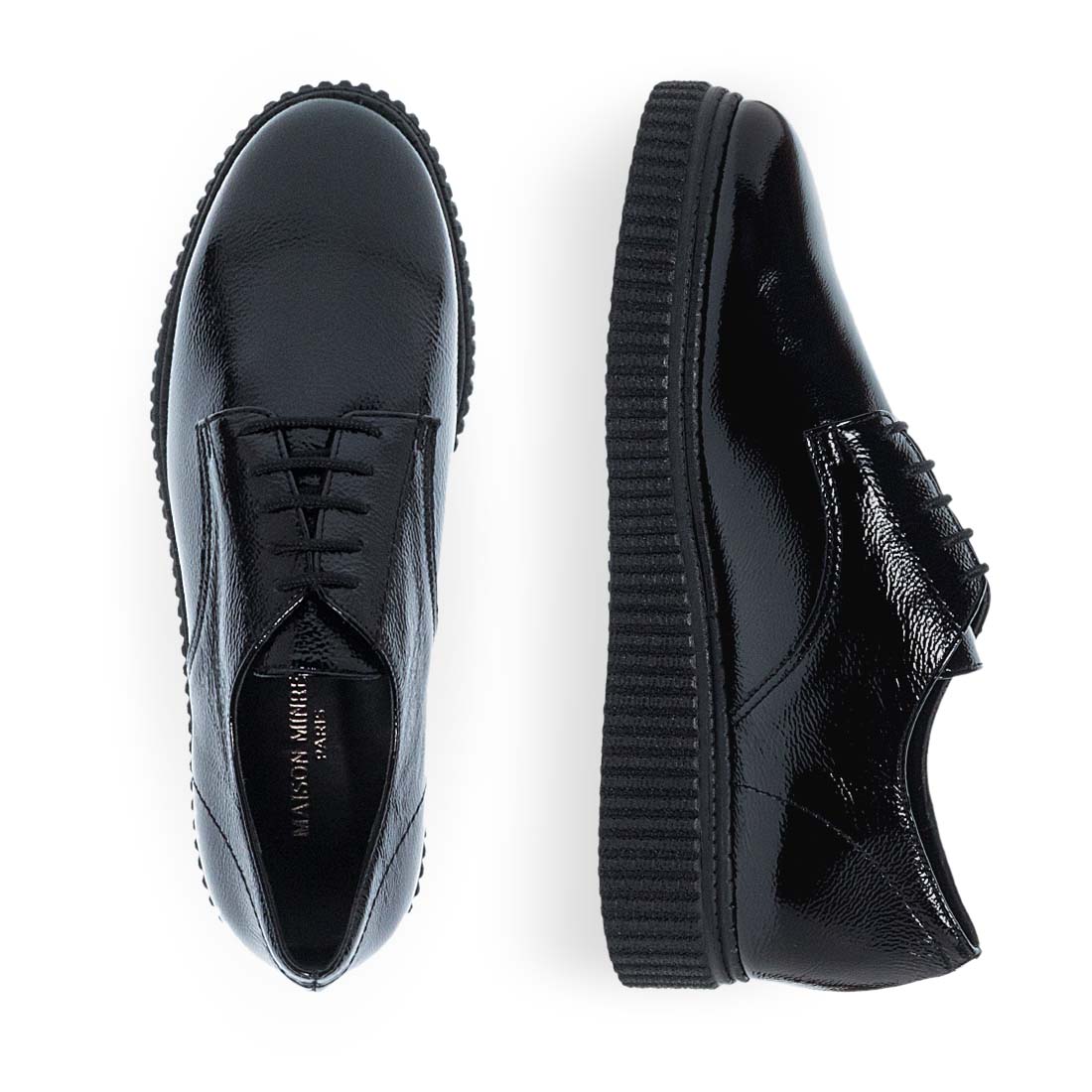 Women''s leather oxford shoes by Maison Minrelle. Leather women’s oxford shoes by Maison Minrelle with glossy finish and minimal design. Elegant and timeless, ideal for any occasion.