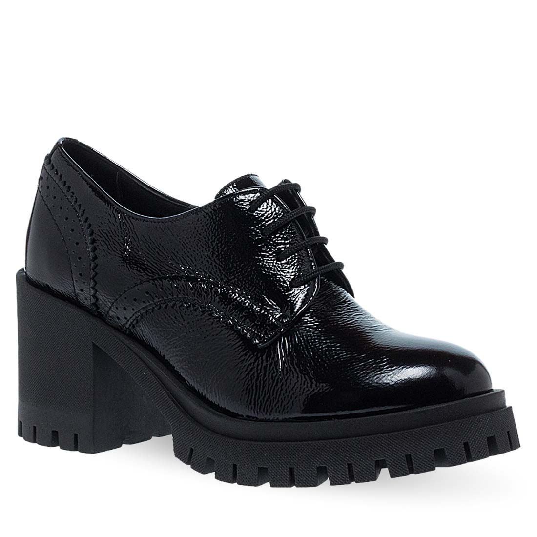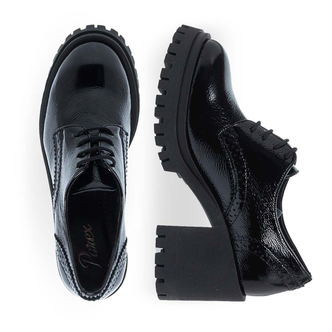 Women''s leather oxford shoes by Parex. Women’s Parex leather oxford shoes with block heel and glossy finish. A modern choice for elegant, standout looks.