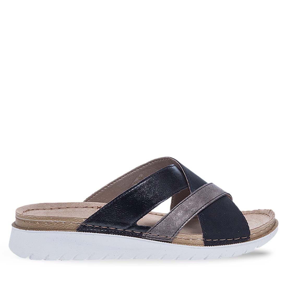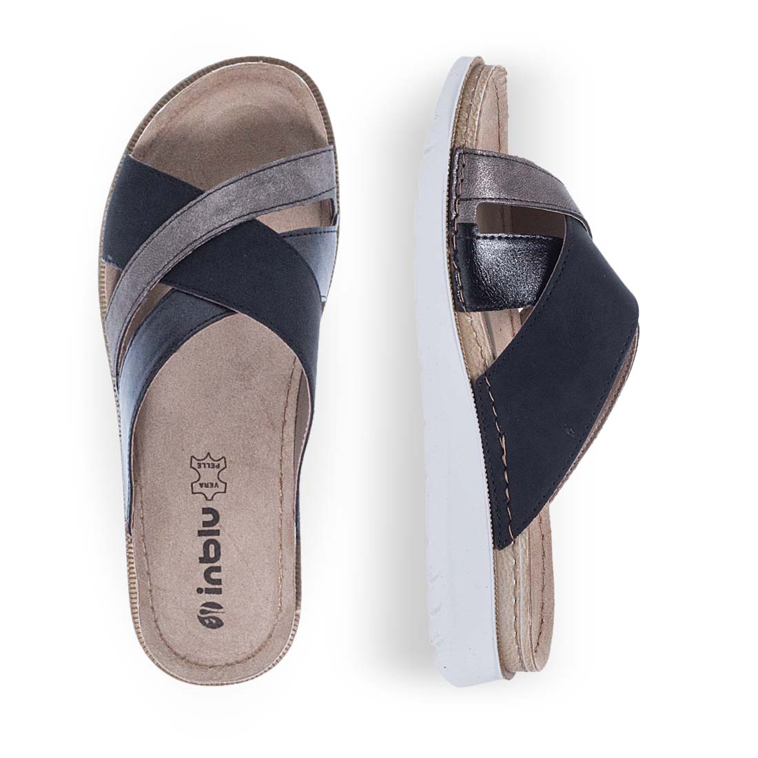 Comfortable mules for women by Inblu. Cross strap on the upper. Padded footbed with great arch support. Leather insole. Ideal to use day to night. Easy application.
