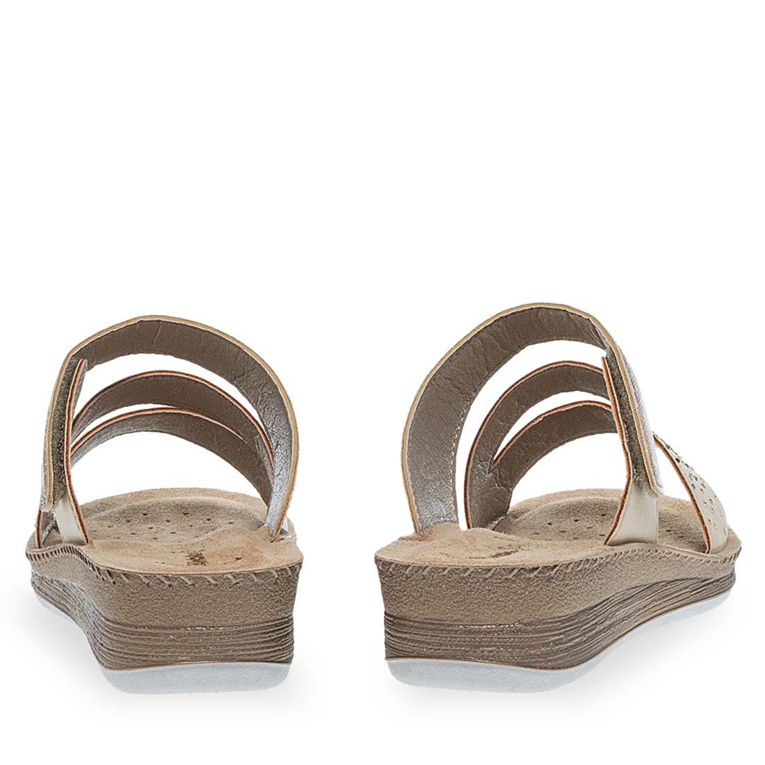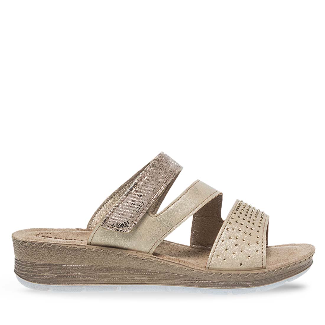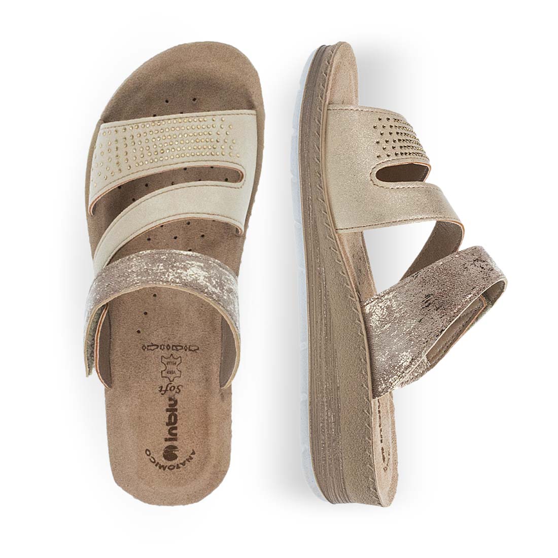 Women''s comfort mules by Inblu in beige with metallic accents and three straps. Ideal for comfort and elegance.