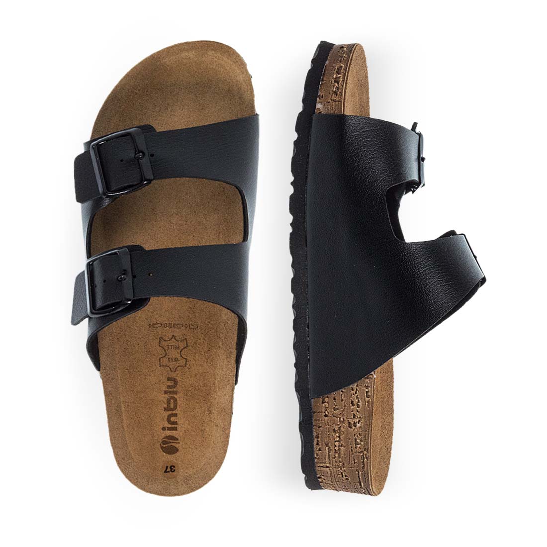 Are you looking for comfort and style in your daily steps? Choose these women''s comfort mules by Inblu. They have two adjustable straps with buckle strap fastening. They have a comfortable leather insole and a stable rubber sole. Durable outsole and easy to fit. Available in black color.