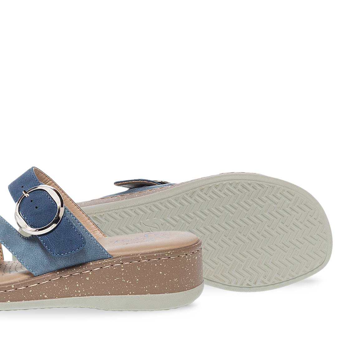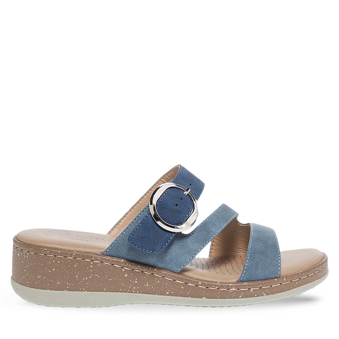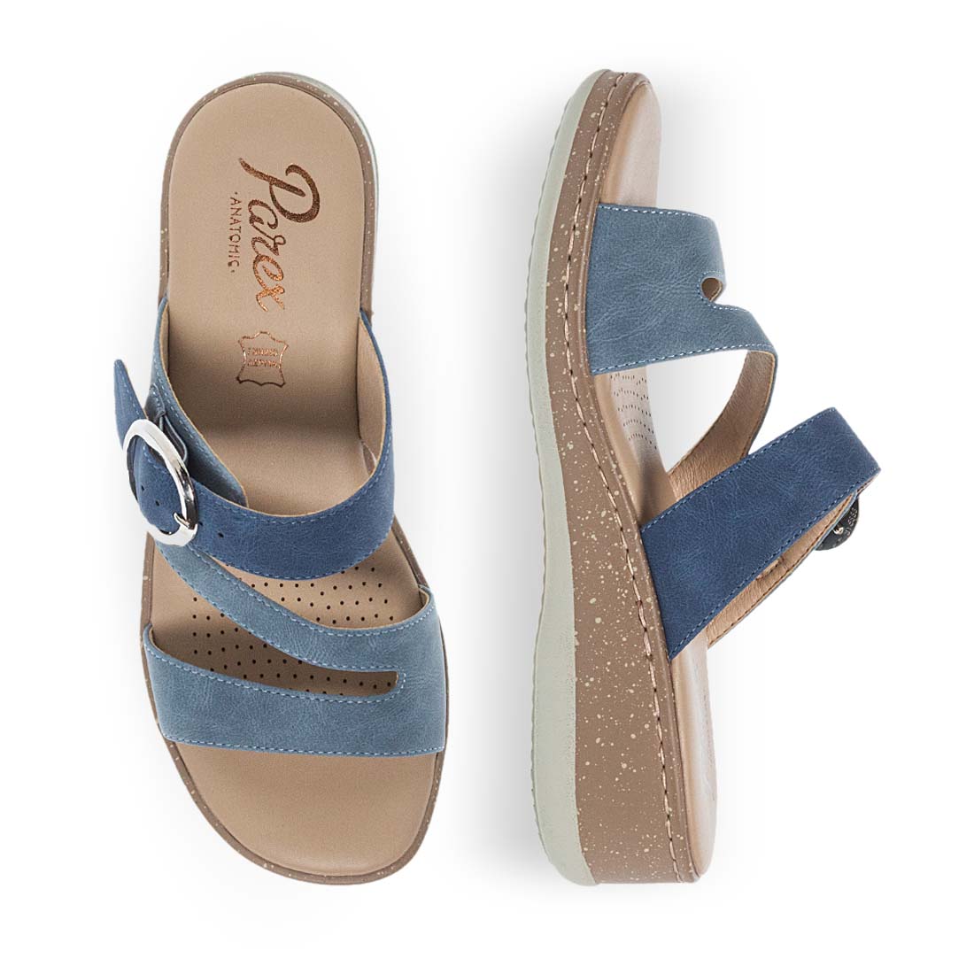 Comfort mules for women by Parex,ideal for all hours. Metal buckle closure at the upper. Made of high quality eco materials. Soft footbed and durable platform sole. Available in black, blue and nude colors so you can choose the one that suits you.