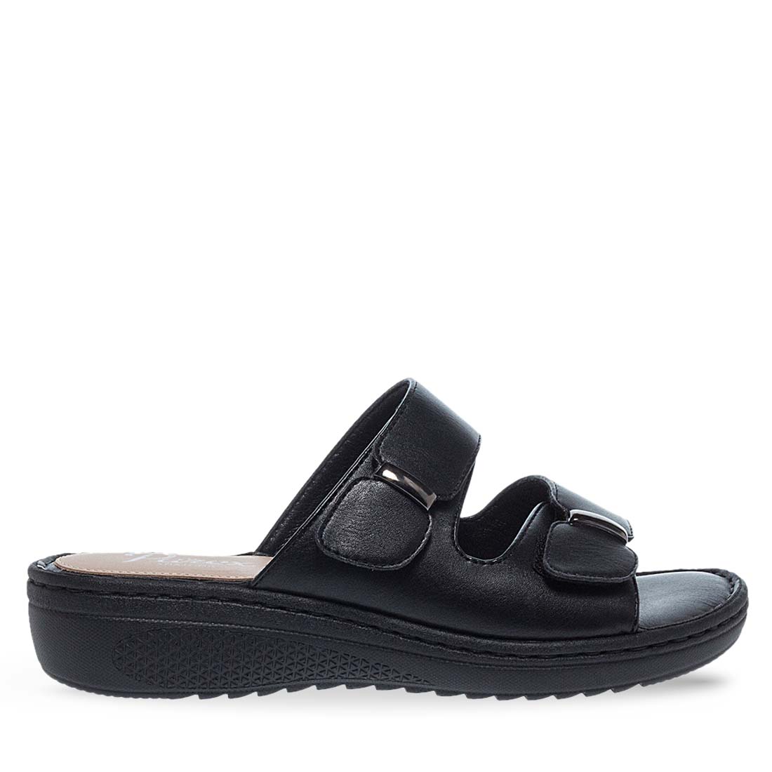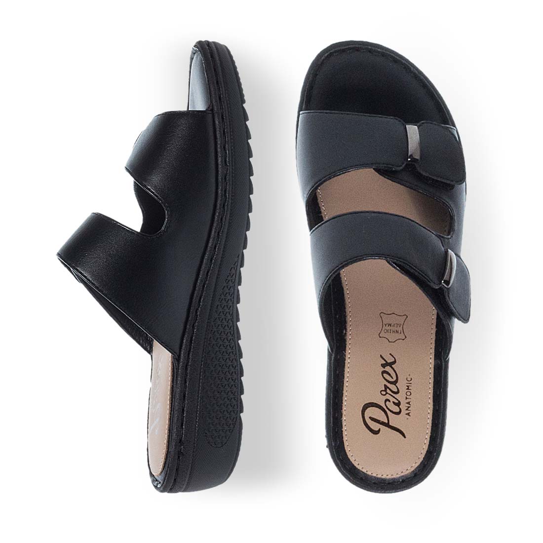 Comfortable mules Parex with two straps. Velcro details. Durable, non slip sole. It’s the perfect pair to spend many hours in.