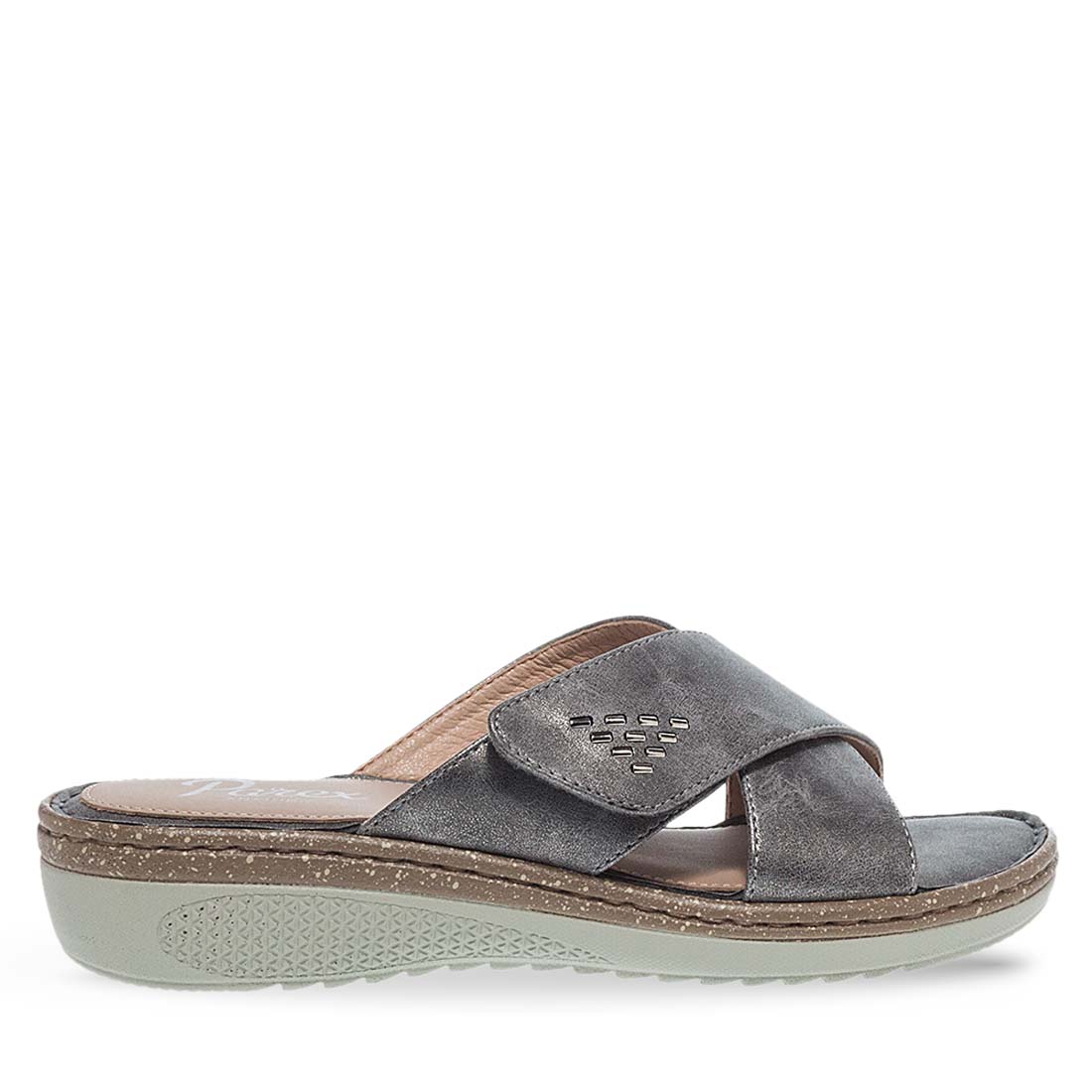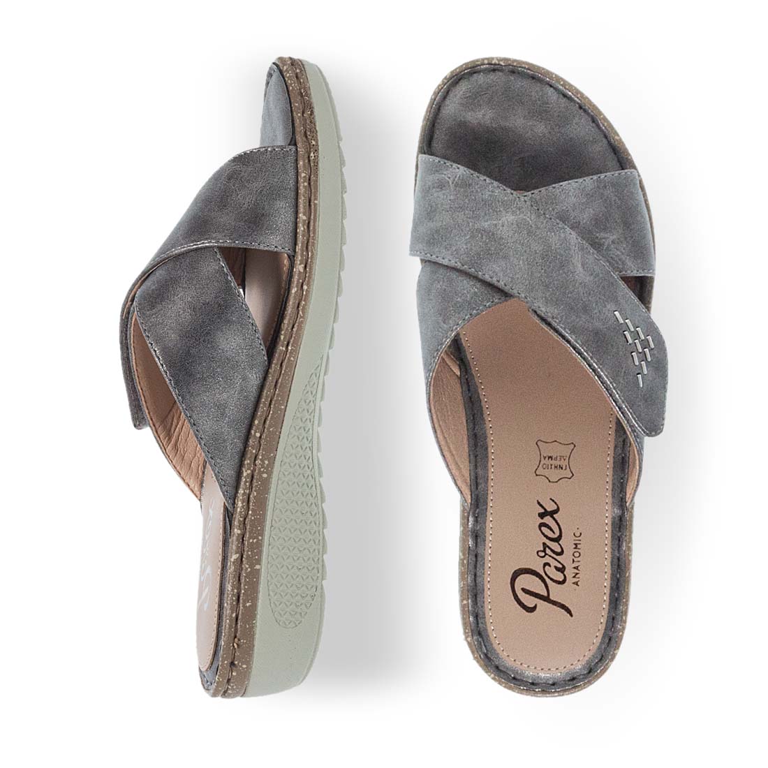 Timelless and comfortable mules by Parex. Crossed straps with velcro. Soft footbed and a firm platform-style sole. Relaxed fit. You will not want to take them off.