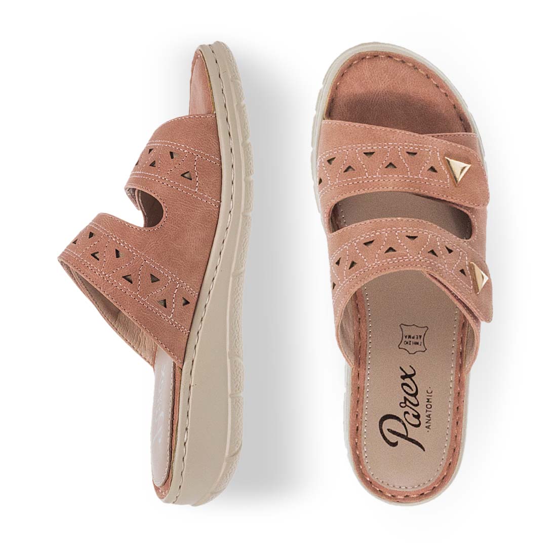 Comfortable mules Parex with two straps. Velcro details. Durable, non slip sole. Designed with high level of quality and comfort. Easy application.