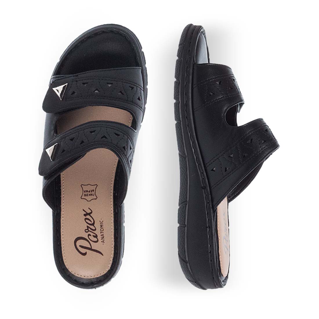 Comfortable mules Parex with two straps. Velcro details. Durable, non slip sole. Designed with high level of quality and comfort. Easy application.