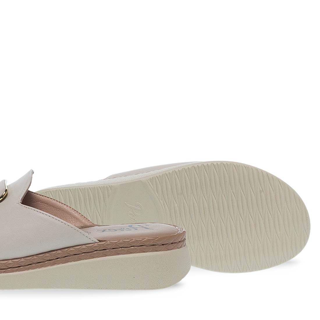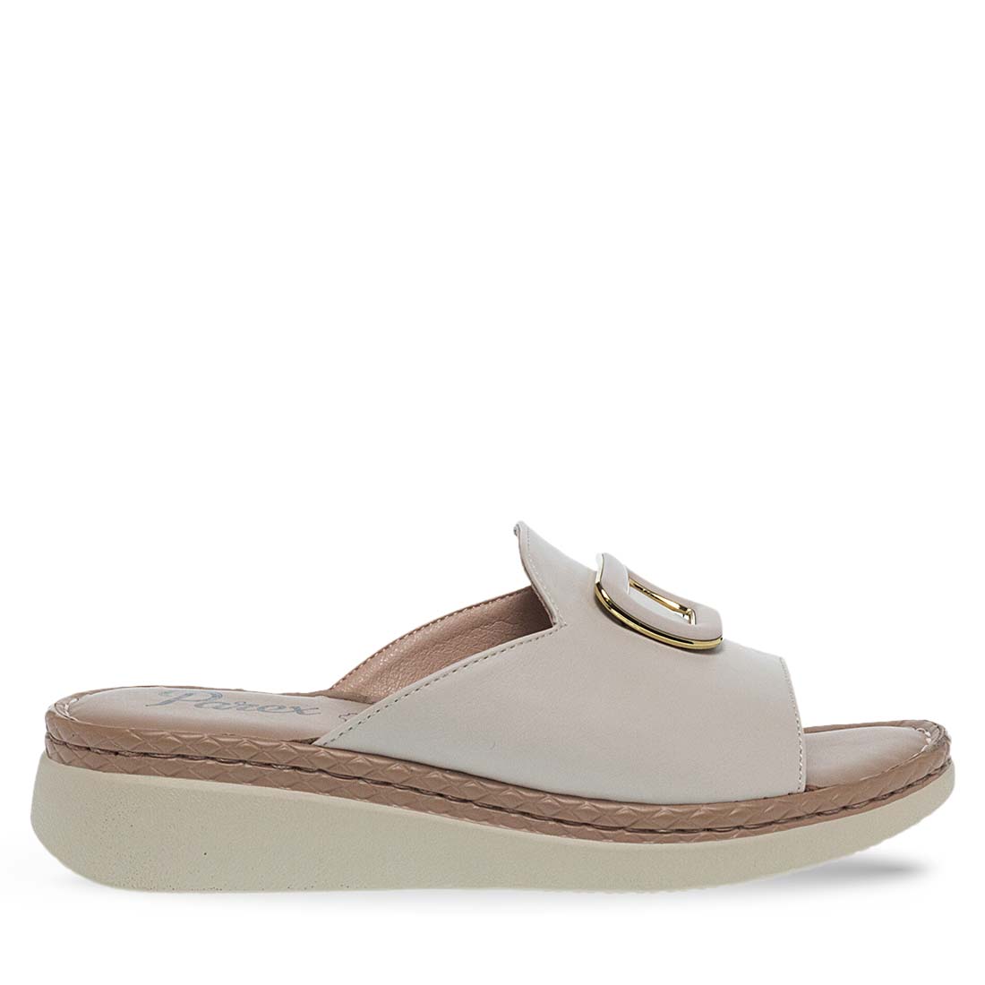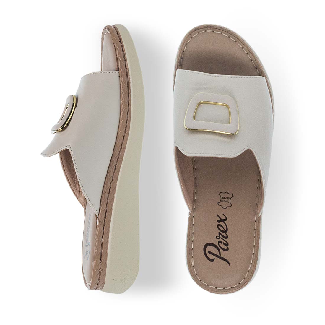 Women''s summer mules by Parex. Comfortable and modern design. Wide strap on the upper with metallic detail. Super soft insole. Suitable to wear day to night. Easy to fit.