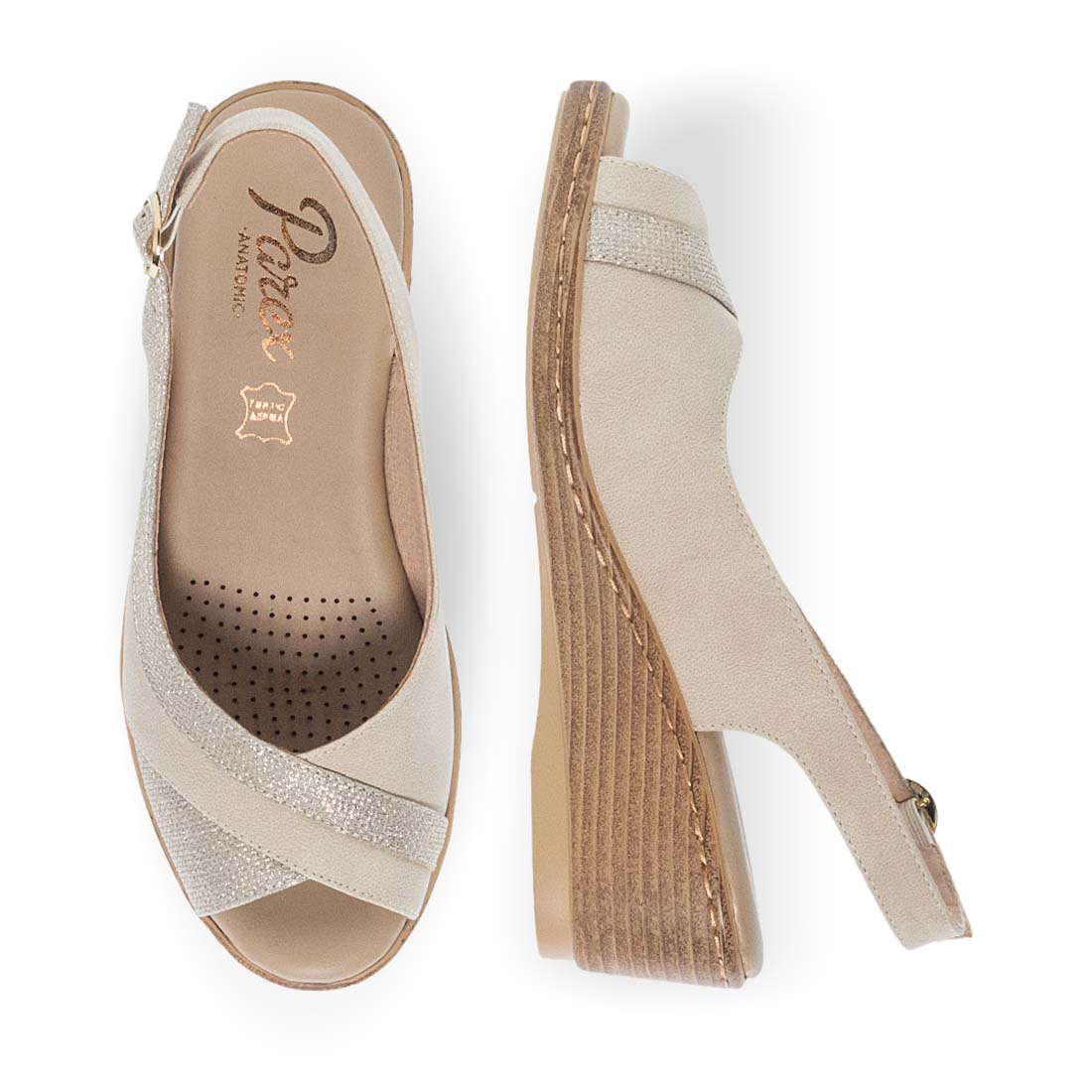 Comfortable peep-toe wedges for women by Parex. Buckle strap fastening at the back. Available in black and beige color. Comfortable leather insole and stable platform sole. Timeless wedges by Parex that every woman should have in her summer collection.