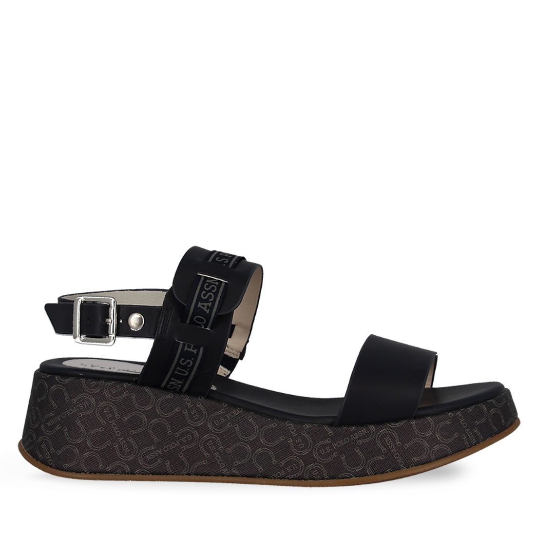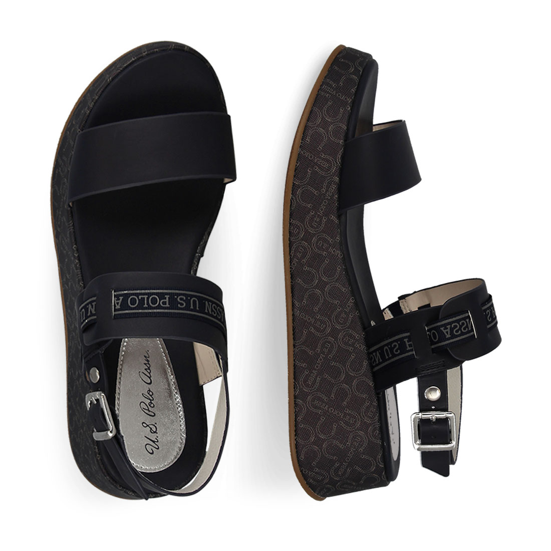 Blue wedges U.S Polo Assn. Two straps one the upper. Mid heel.Renew your every look with these women''s comfort sandals.Made of excellent quality eco leather. Modern design with elasticated panel on the upper .These women''s comfort sandals are very comfortable and soft to wear all day this summer.