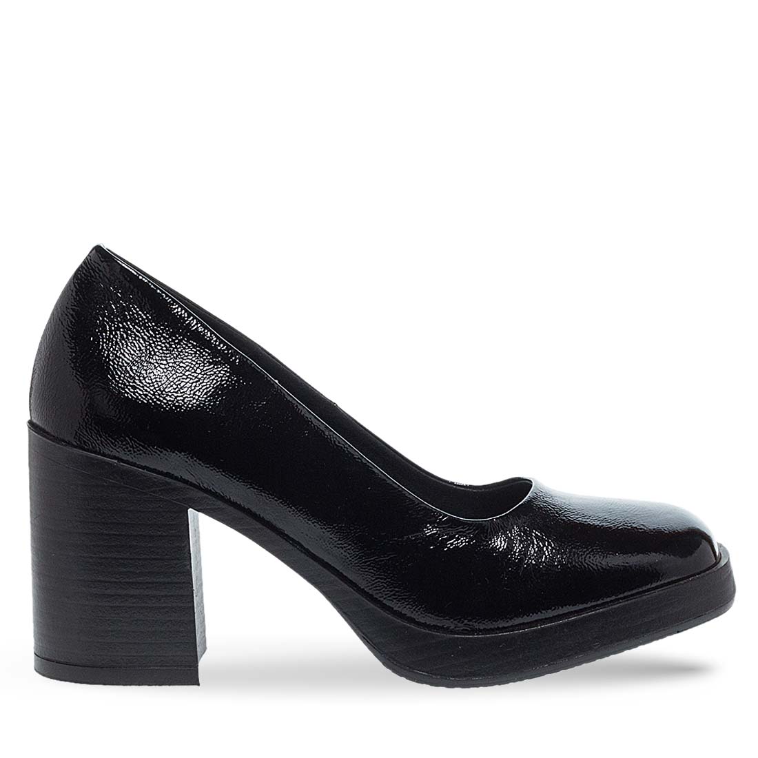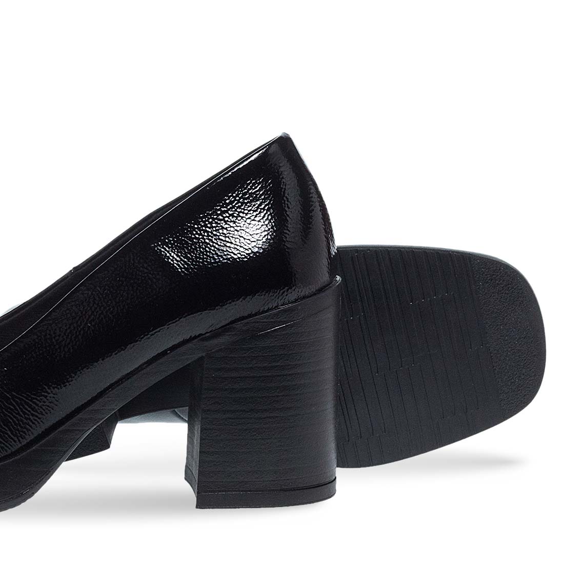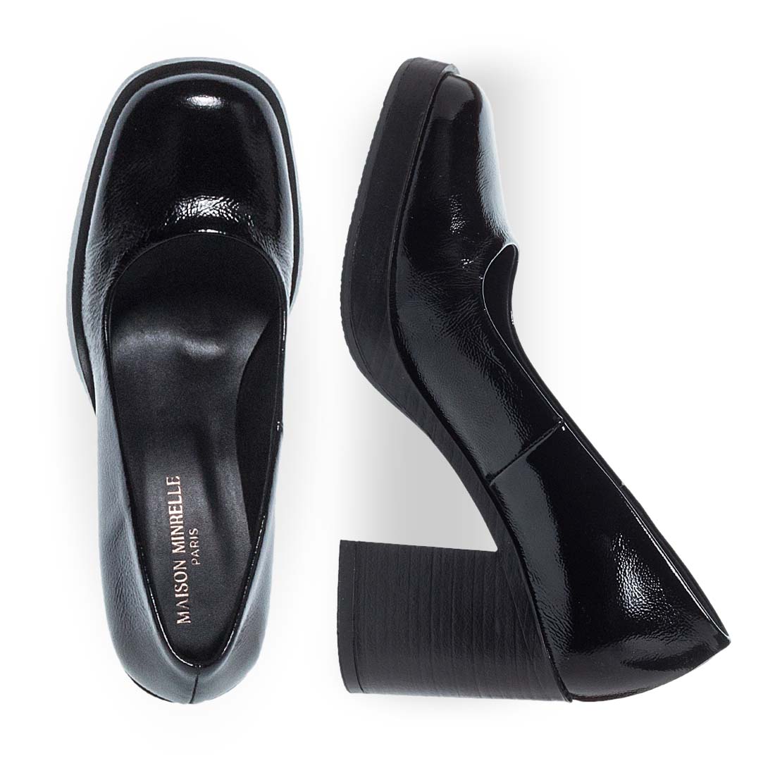Designed in a chic classic silhouette, the Maison Minrelle patent leather pumps are a must-have for any occasion. Block heel with platform sole. Easy to wear. Style yours with socks for the perfect girly look.