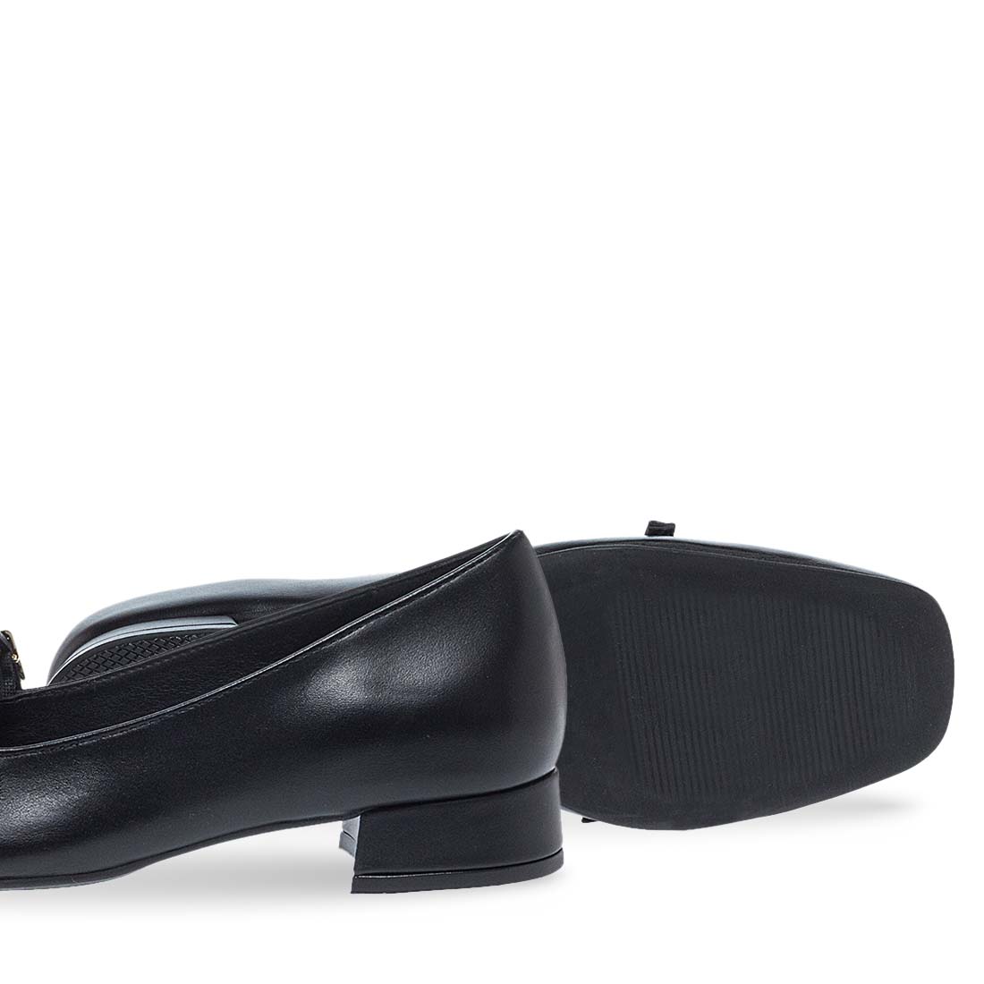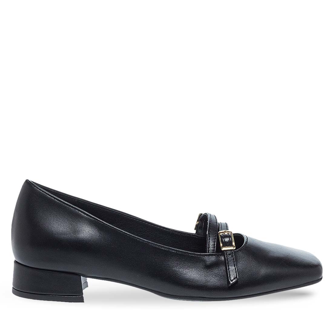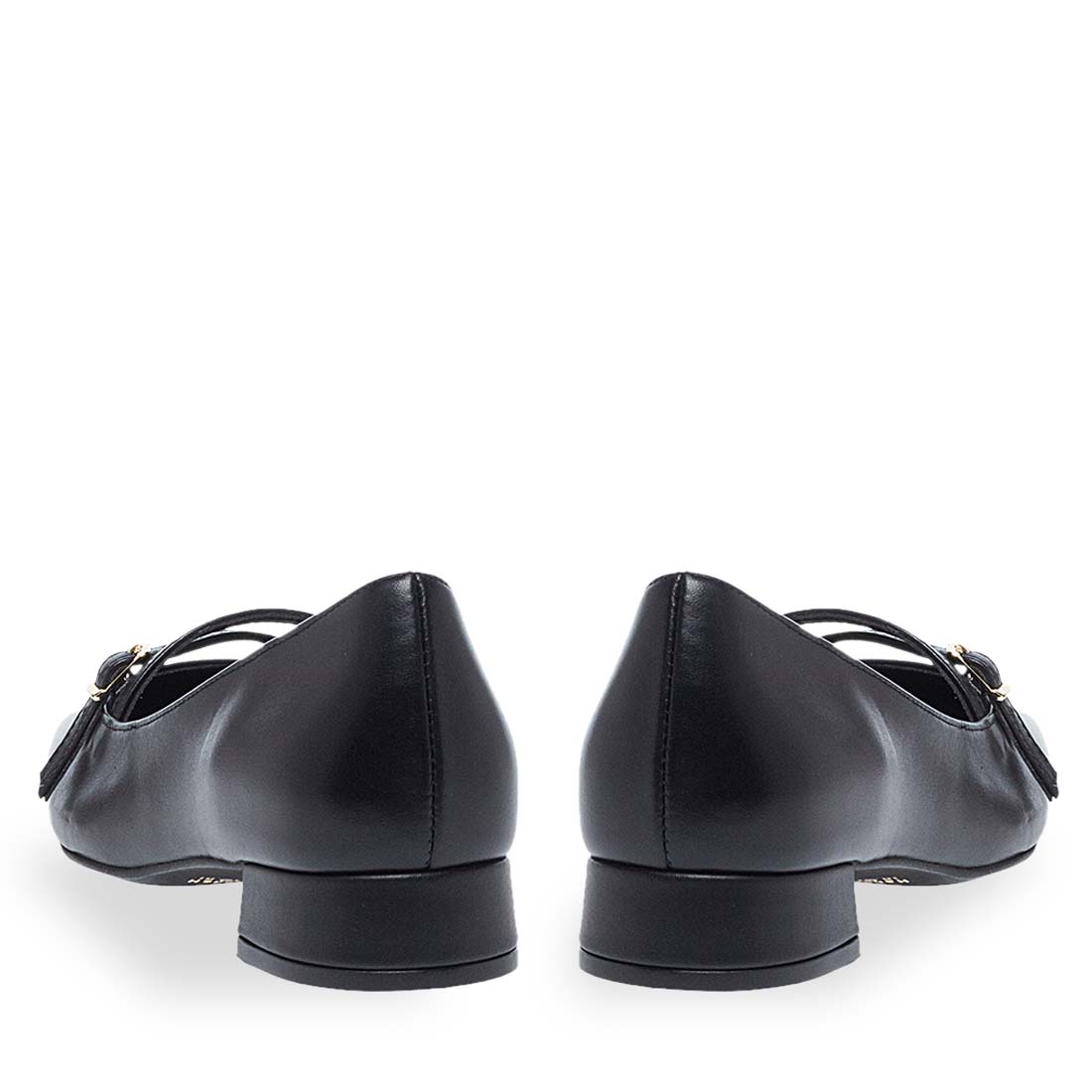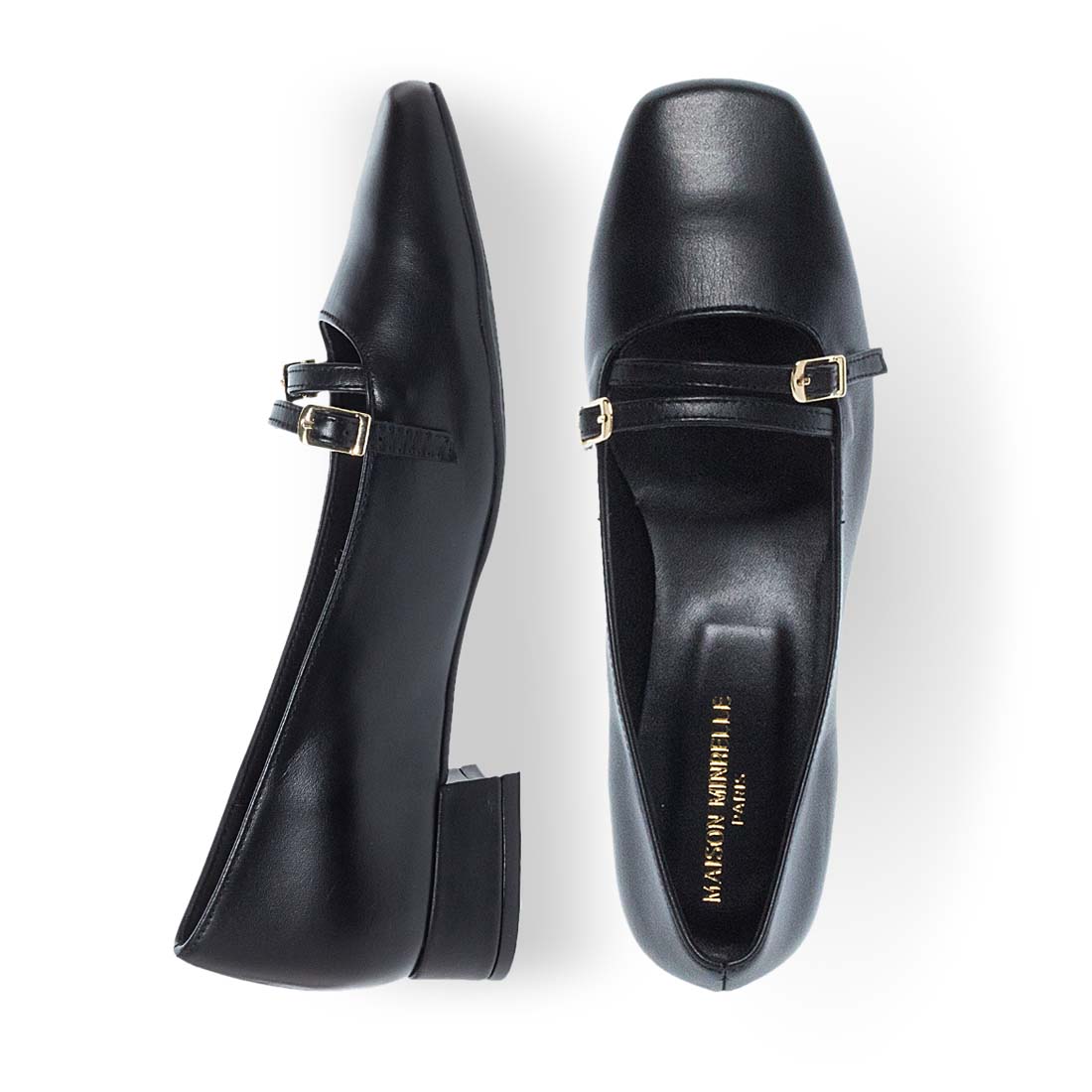 Elegant leather pumps by Maison Minrelle. Low heel. This leather pair comes with a buckle strap and pointed toe design. Leather insole. Anailable in 3 colors.