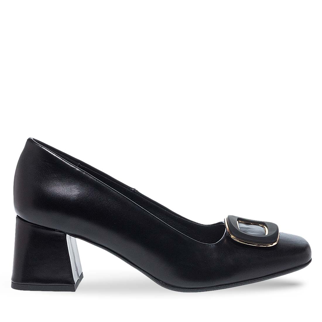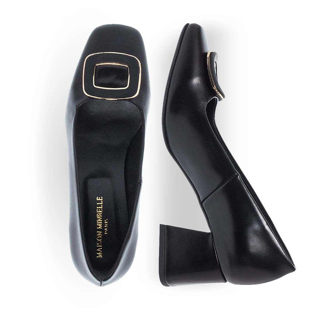 Leather Pumps with rounded toe and flexible sole. Low heel and soft heel. Maison Minrelle classic design for everyday looks.