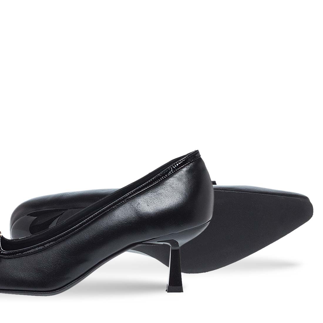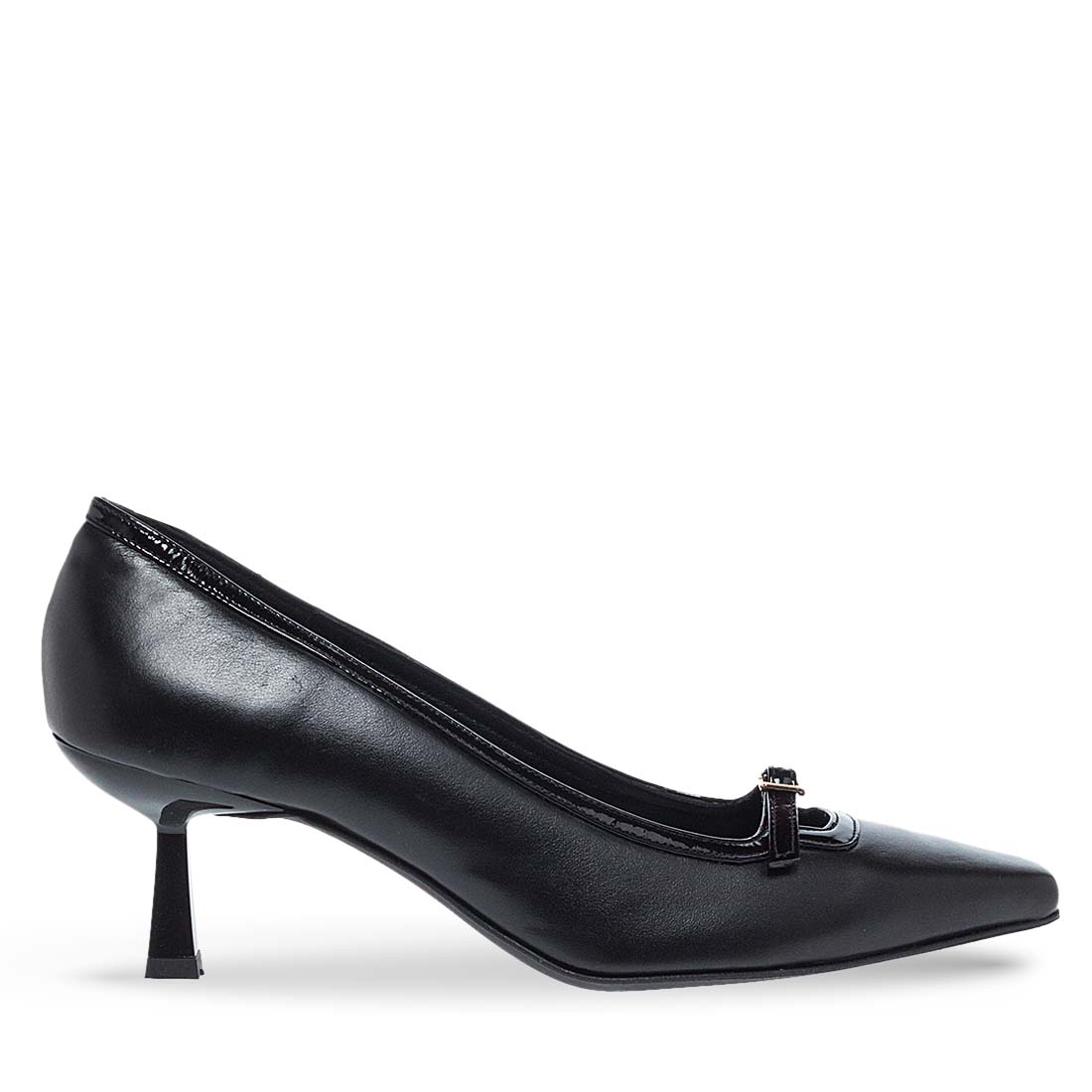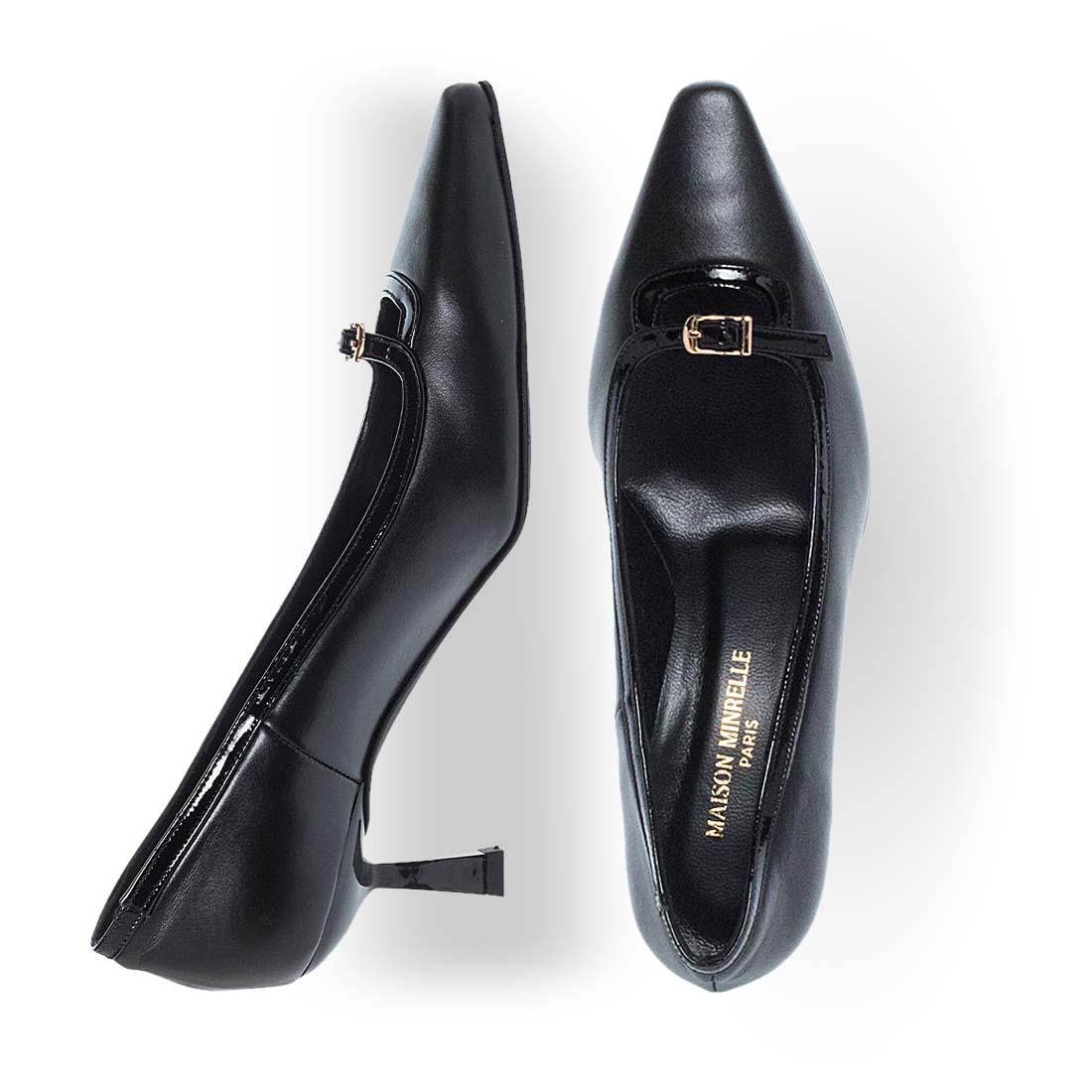 Leather pumps Maison Minrelle for women. Stileto mid heel. Pointed toe design. Timeless design. Fashionable V-cut. Easy to fit.