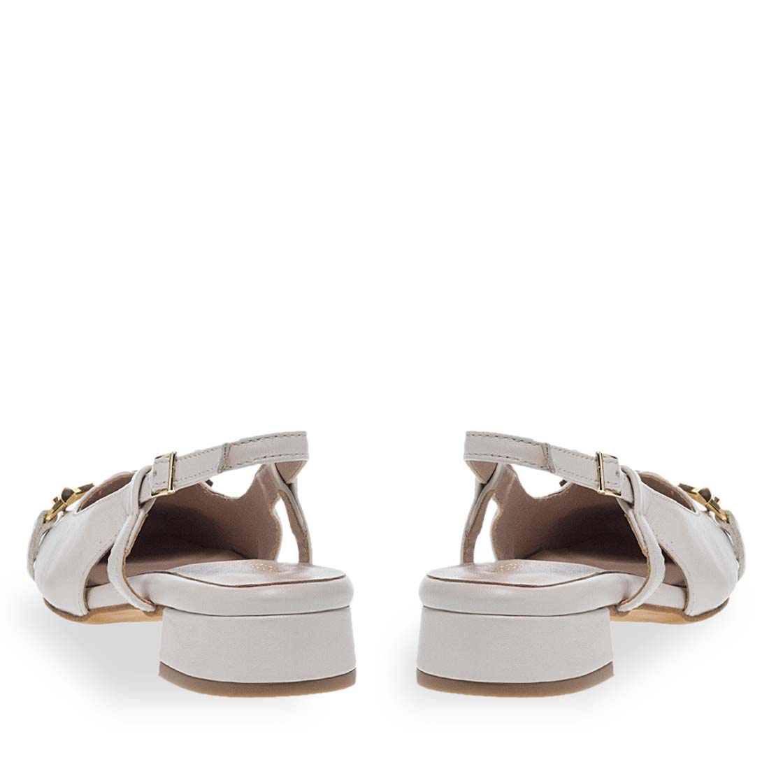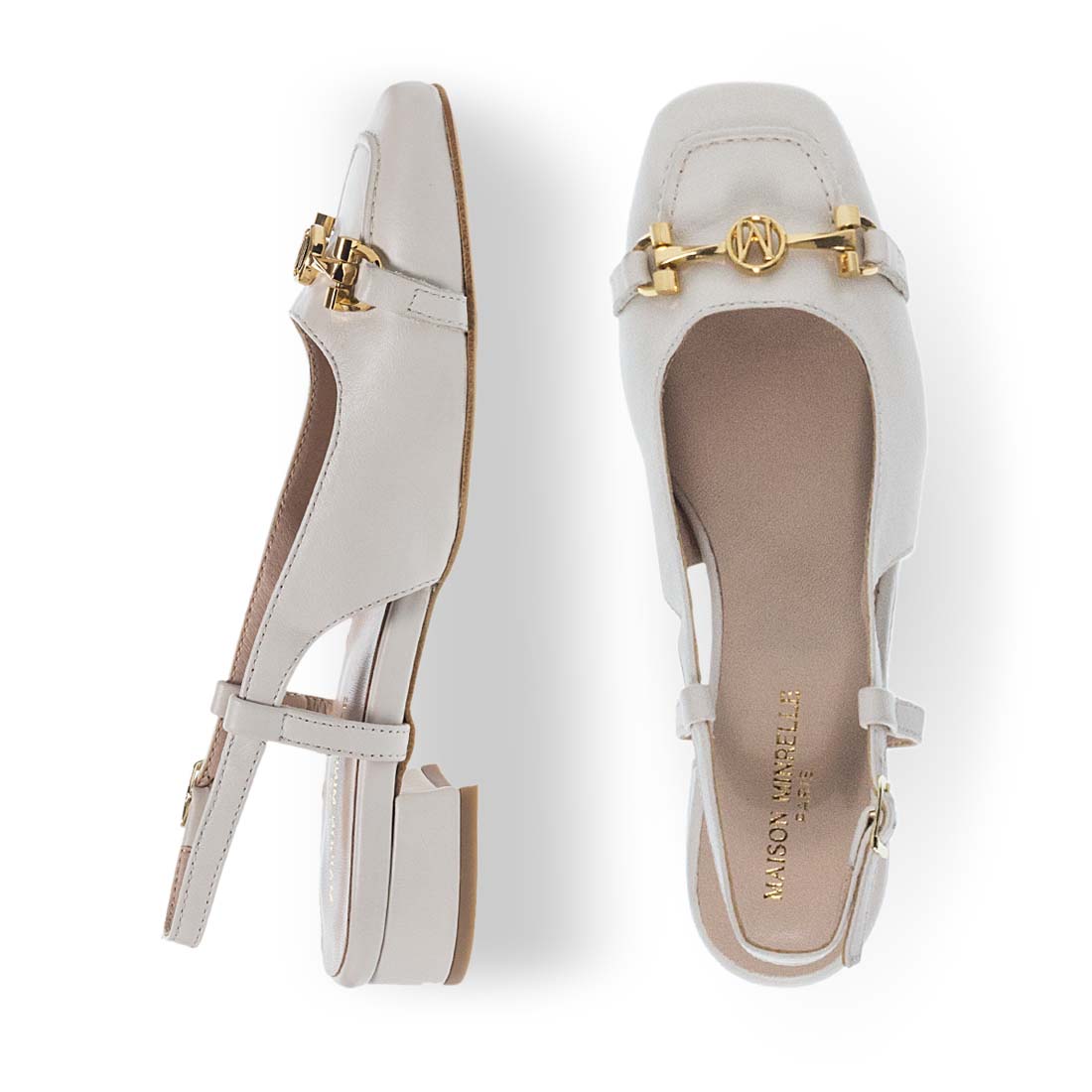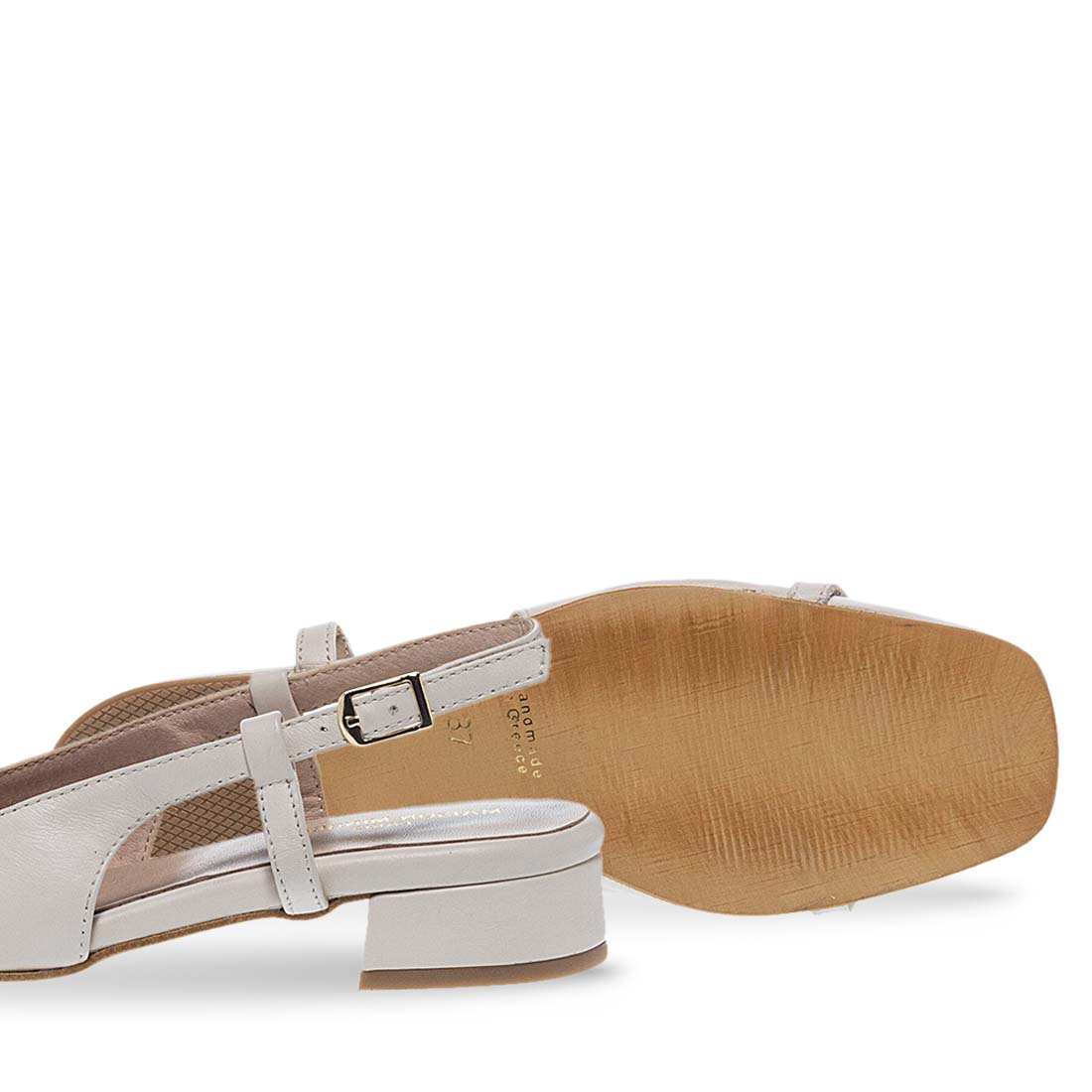 Elegant pump-sandals Maison Minrelle with low block heel. Soft insole.A chic pair to style with your office outfits. Ideal to use day to night. Modern design.