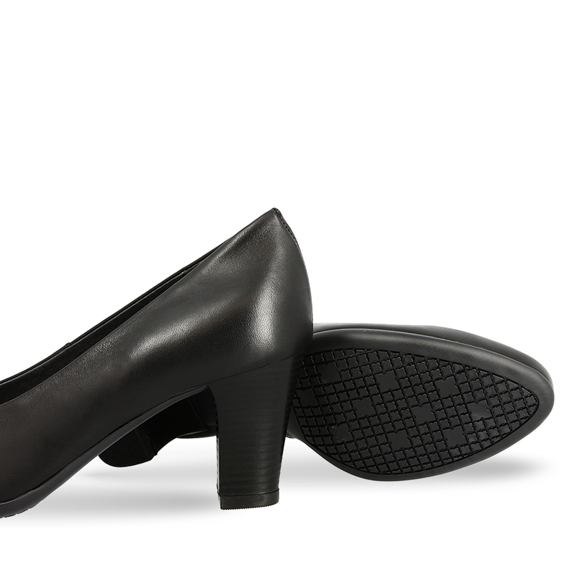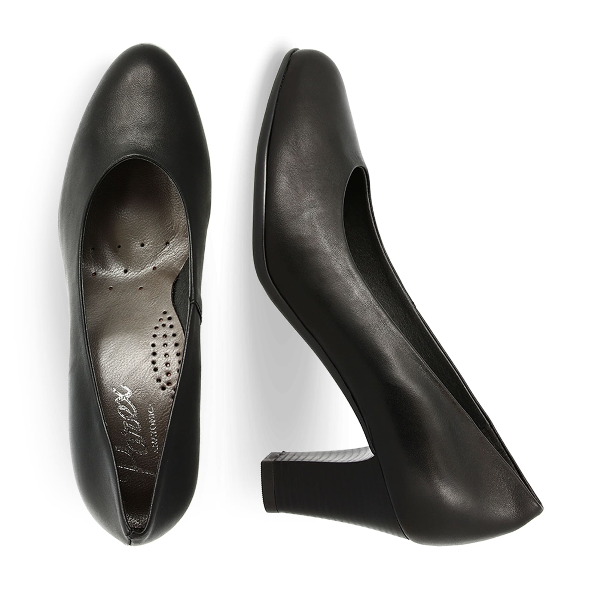 A classic leather pair by Parex with soft insole and non slip sole. Low block heel for all day comfort.