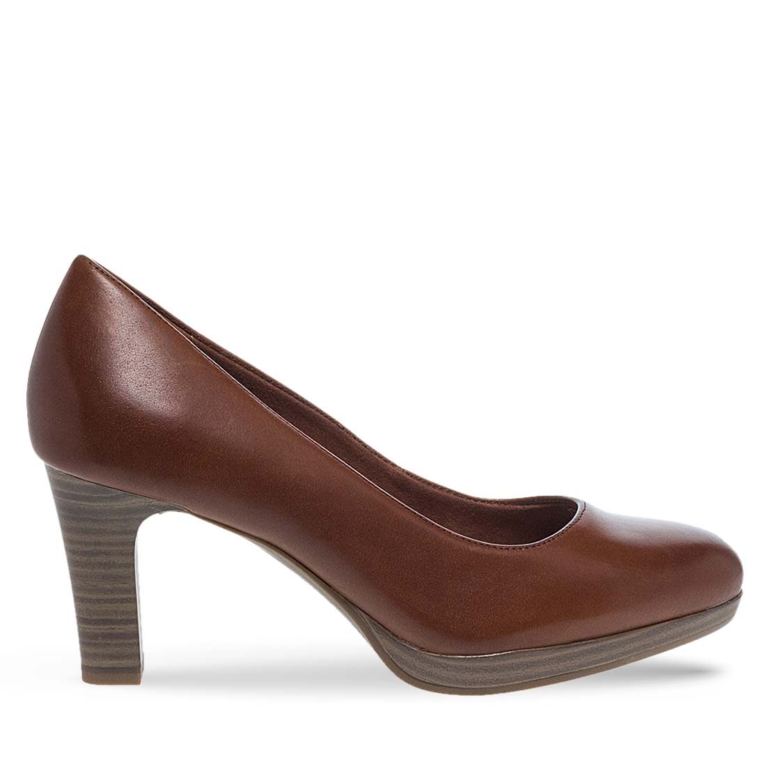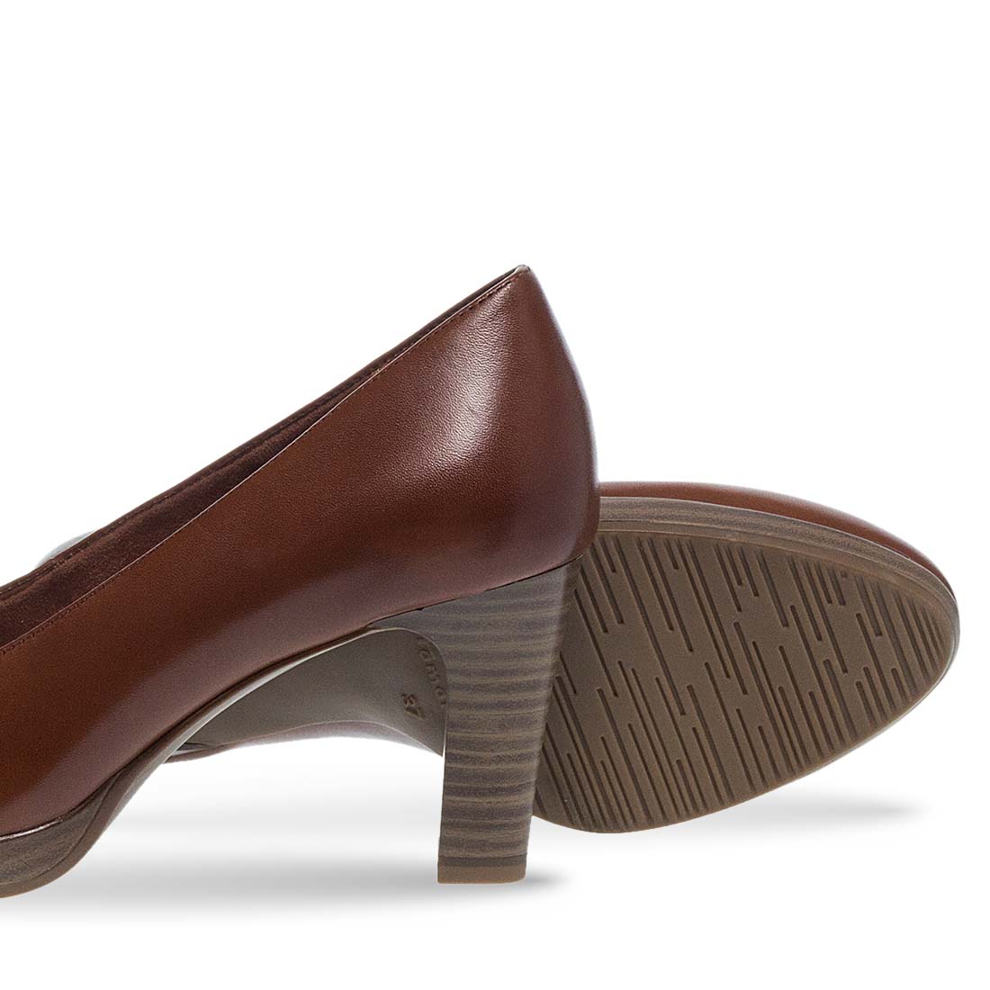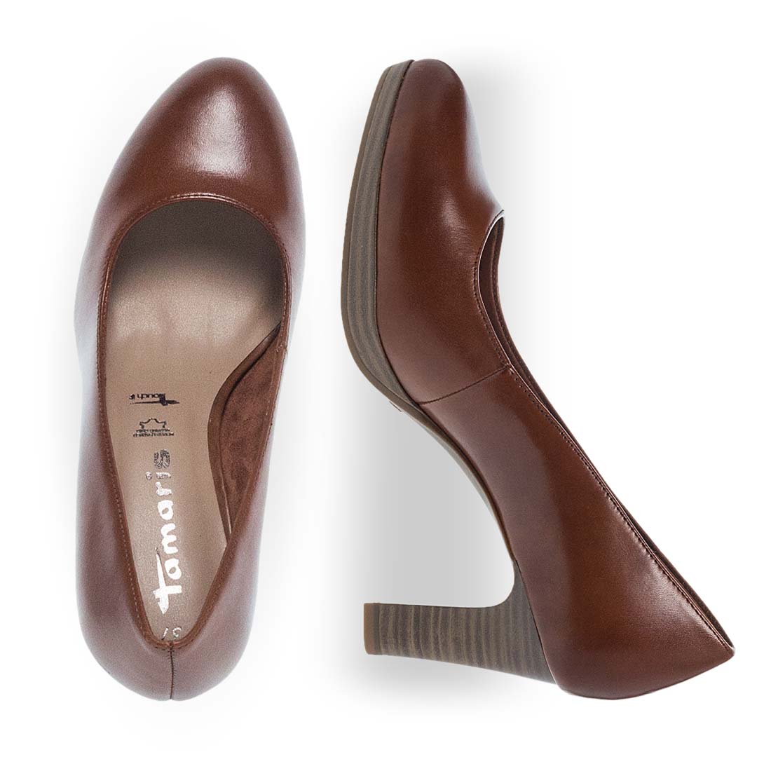 Leather pumps in classic design with high block heel by Tamaris. Round-toe. Super soft comfortable insole. Wear them from day to night. Easy application.