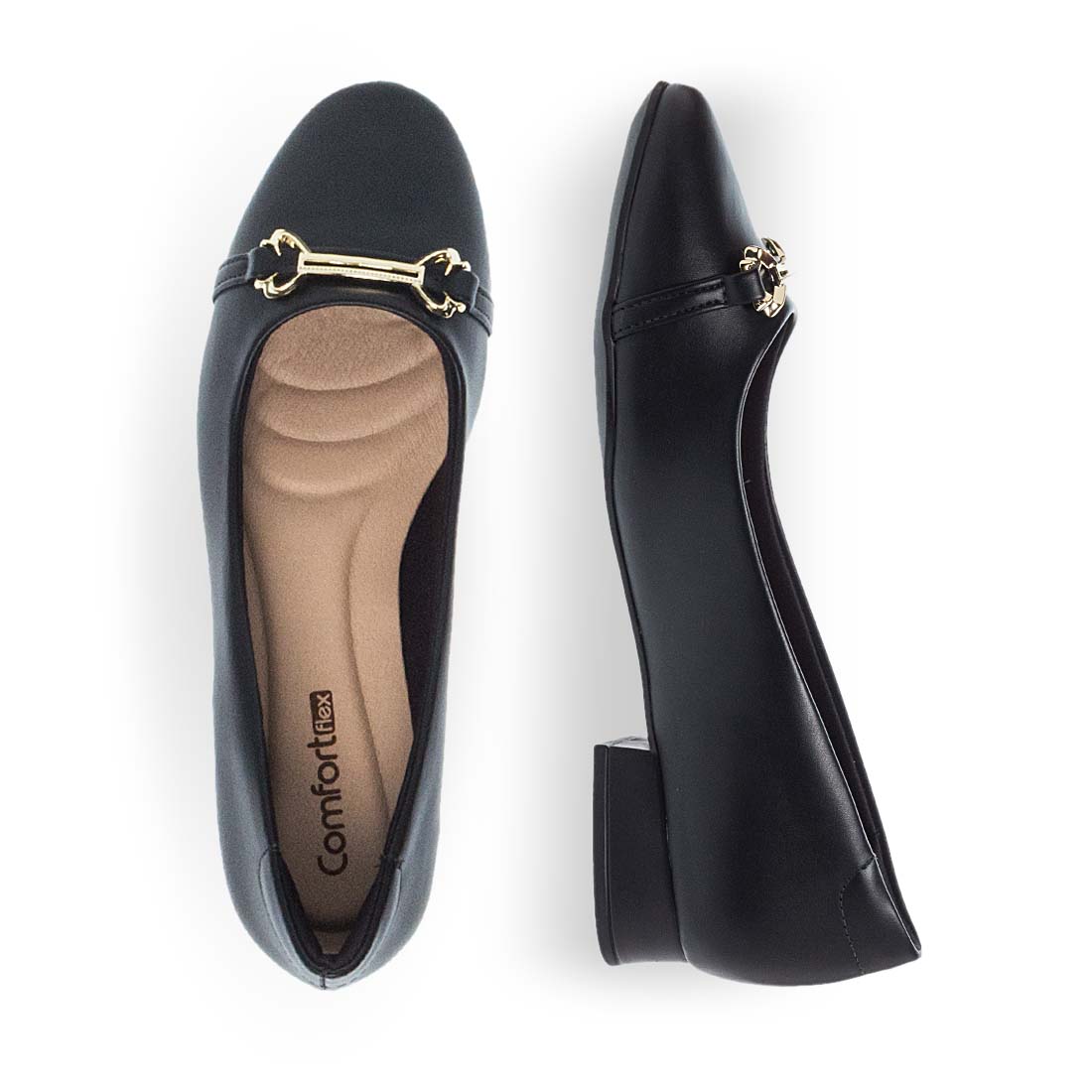 Black pumps Comfort Flex with metal detail on the front. Made of faux leather.Comfortable footbed with a low heel, stable and extremely soft. Easy to fit.