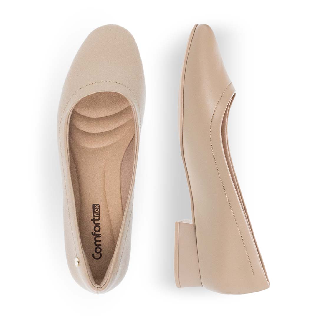 Soft and comfortable pumps for women by Comfort Flex. Low heel. Monochrome design. They can keep your feet more comfortable. Ideal to use day to night. Elegant design. Available in beige color.