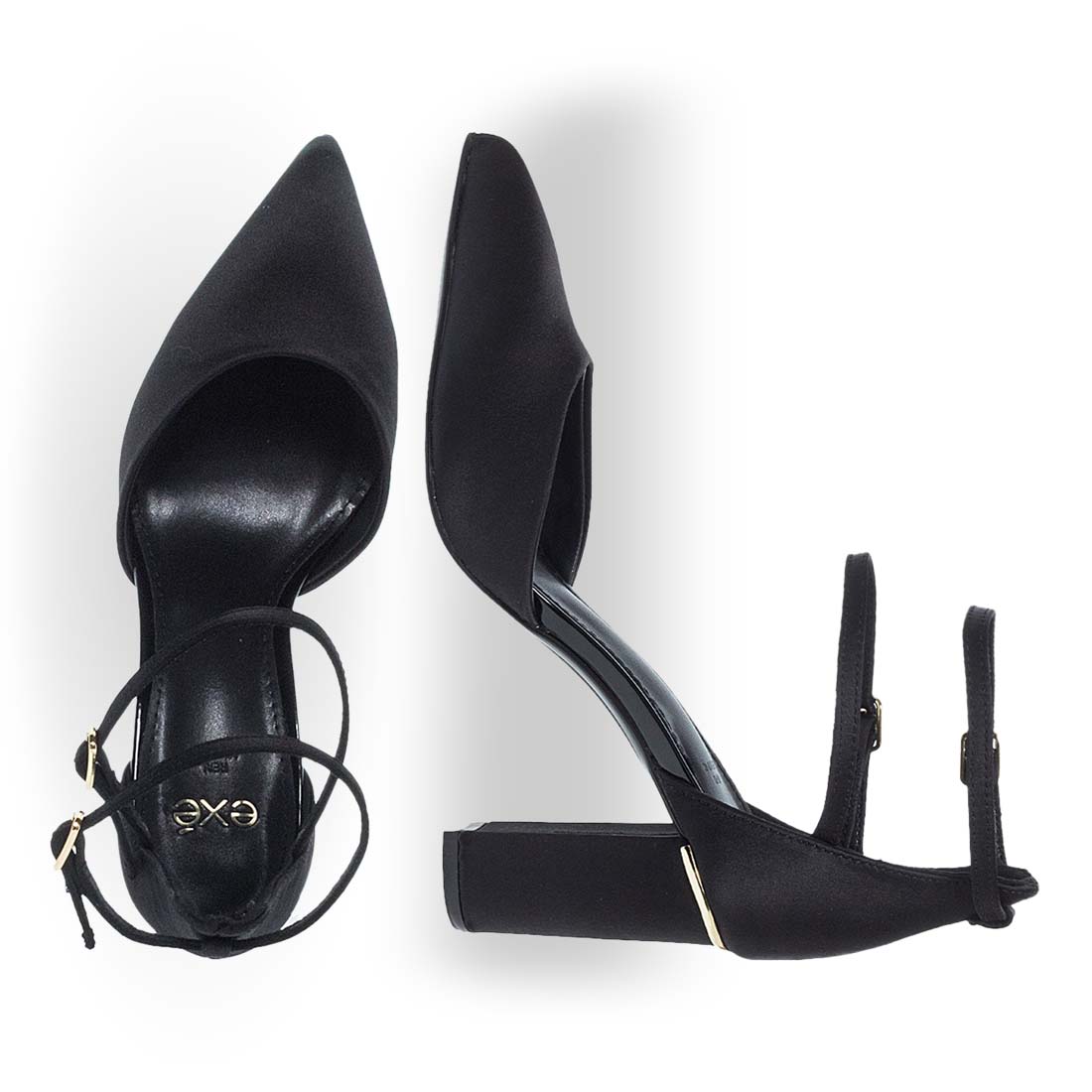 Black women''s pumps by brand Εxe.High quality faux leather.Comfortable insole . Ankle straps make your legs look longer . Modern design.