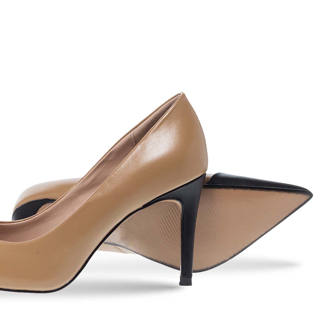 Comfortable and modern pumps for women. Made of synthetic leather. Stileto sexy high heel. This style will look great with your fresh wardrobe. Easy to wear.