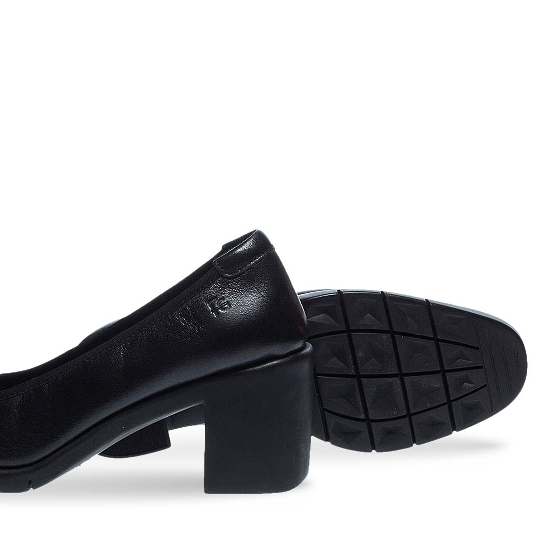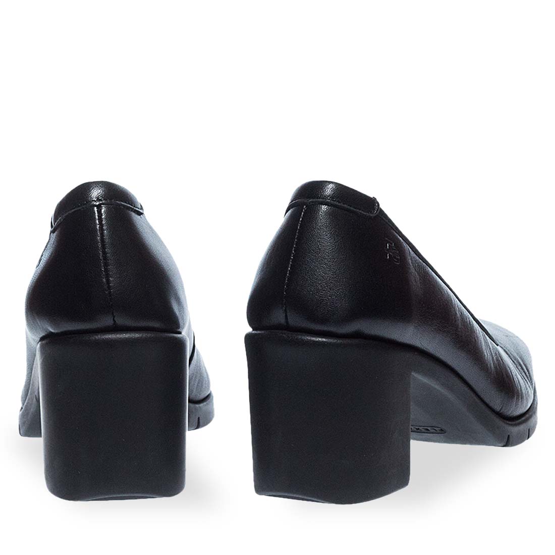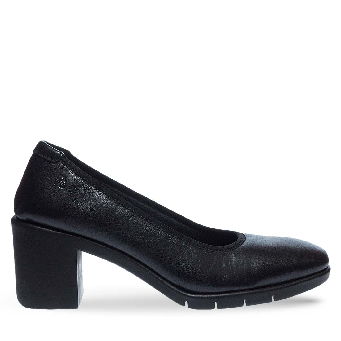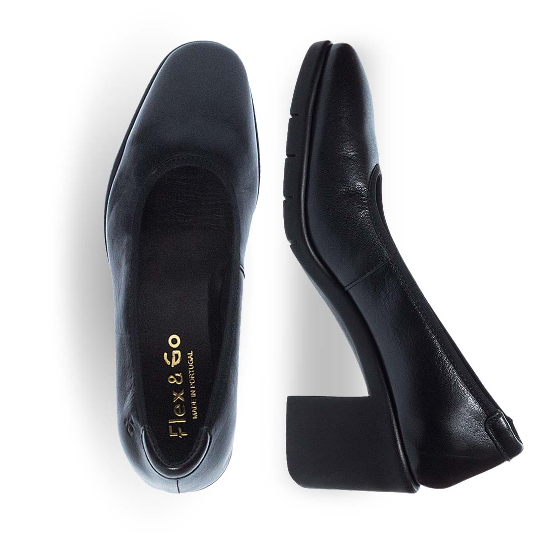 Black leather pumps by Flex & Go. Stable sole with ideal block heel so you can wear them all day. Soft footbed and round toe in the front that will provide comfort in your everyday life. Elegant pair with easy fit.