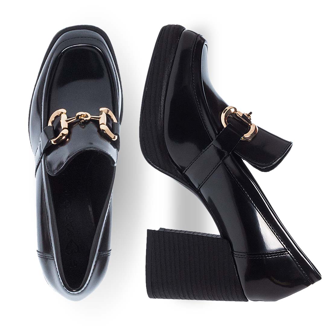 Βlack vegan loafers with low heel by Marco Tozzi. A super stylish design with Feel me Technology and fabric lining. Modern and comfortable design. Easy to fit.