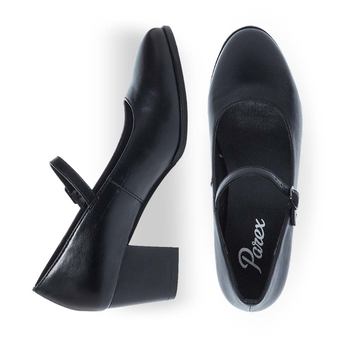 Stylish and comfortable pumps by Parex. Strap detail on the upper. Rounded toe. Mid heel. A good mix of comfort and style.