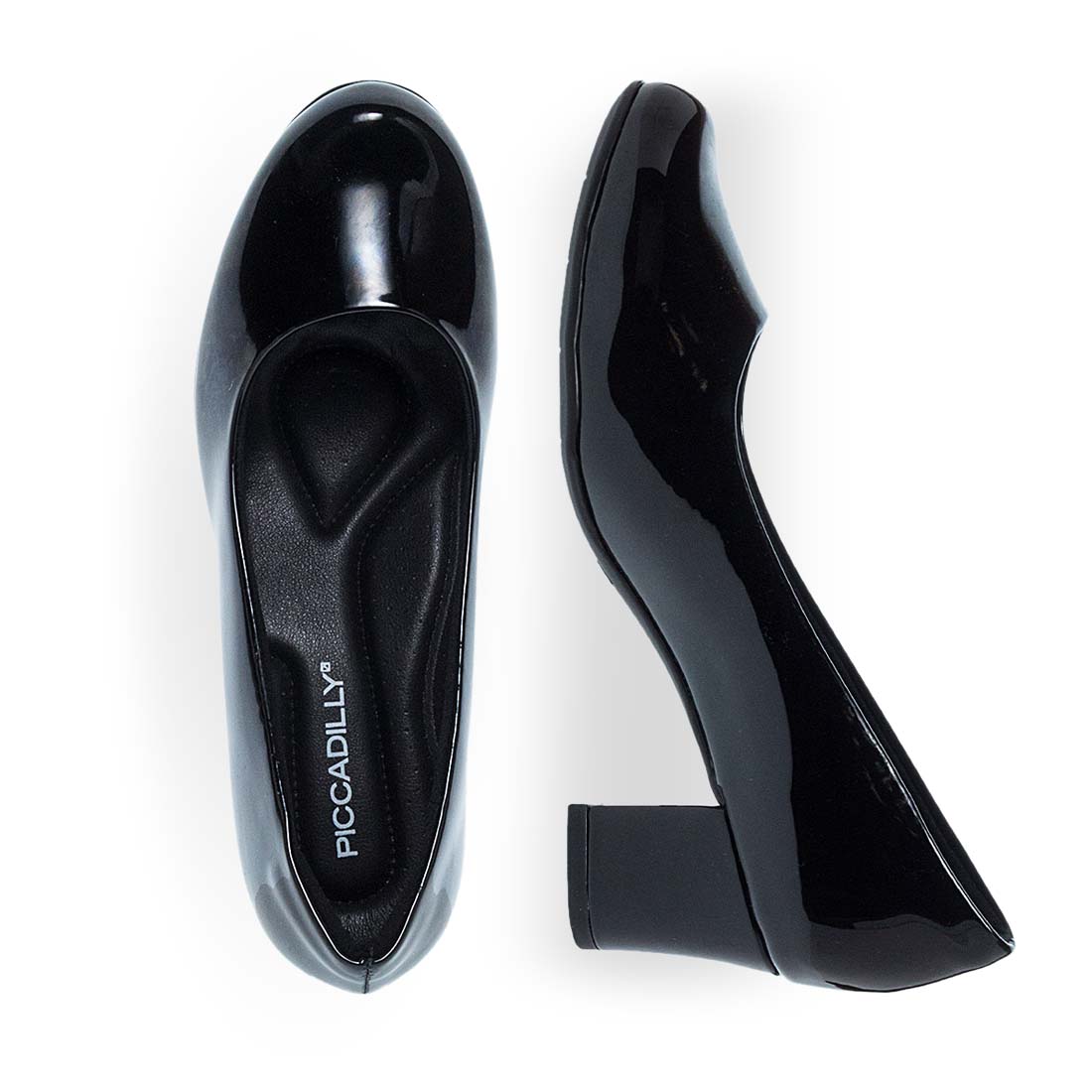 Women''s pumps by Piccadilly. Classic black patent pumps with round toe and low heel, perfect for office comfort.