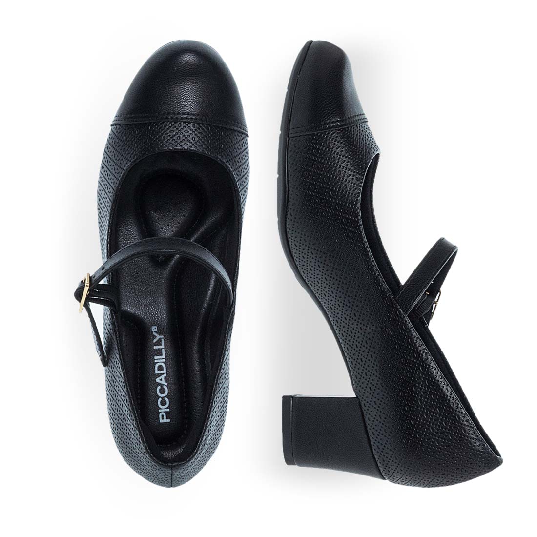 Women''s pumps by Piccadilly. Black textured pumps with strap for stability and elegance in every step.