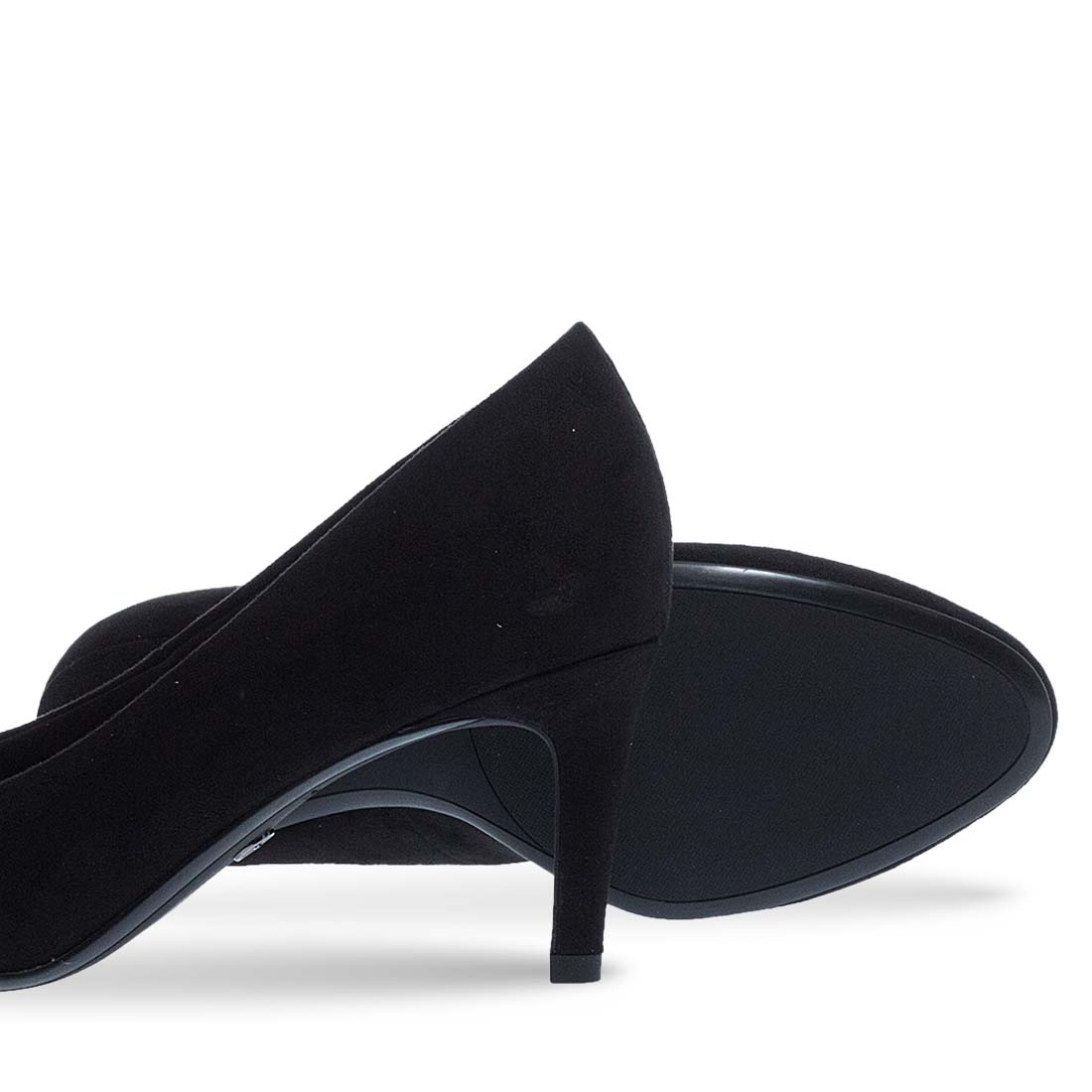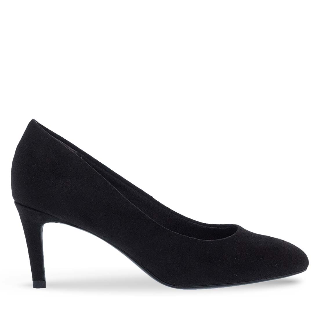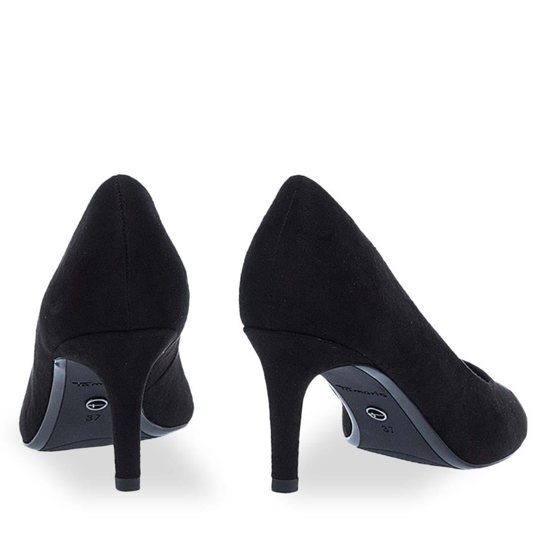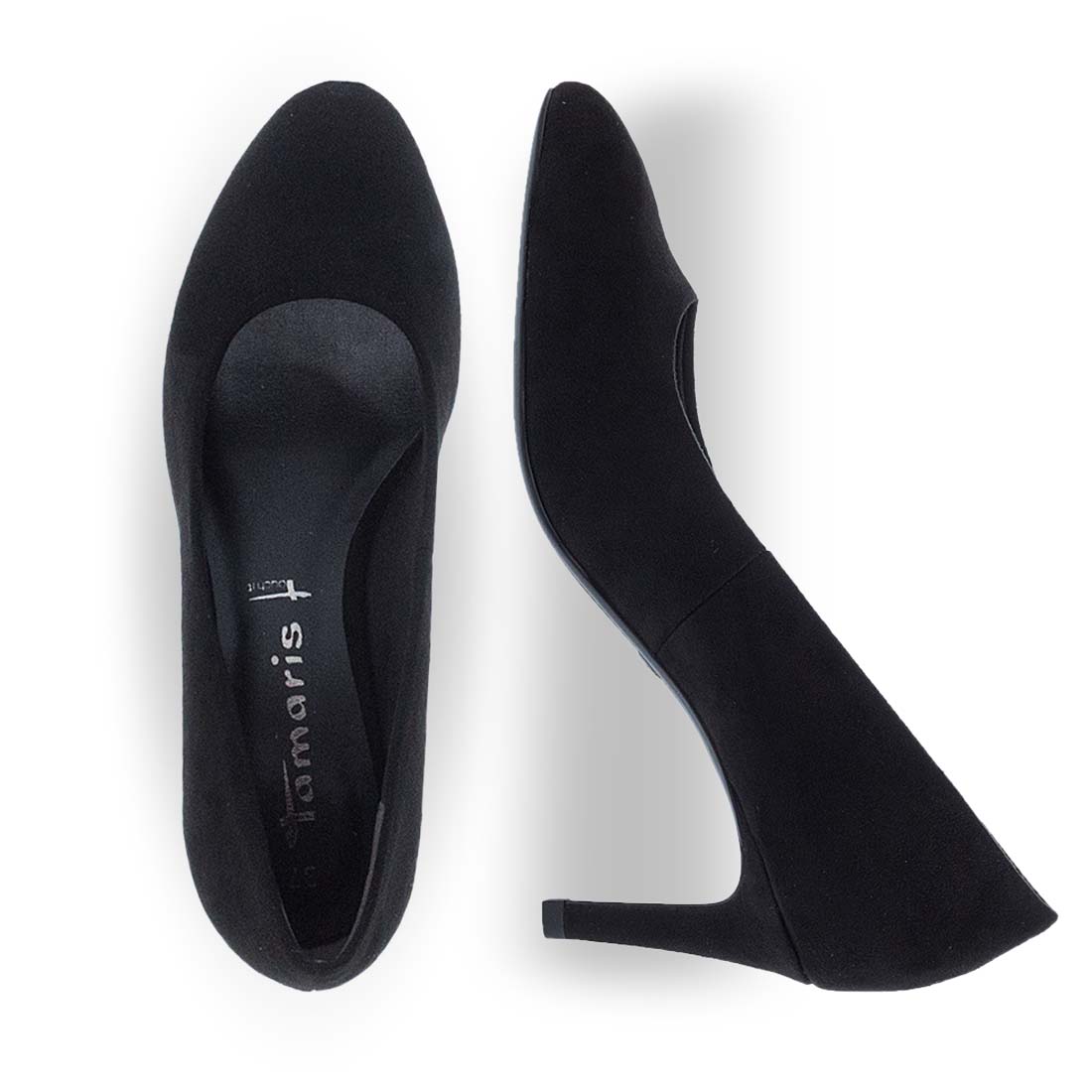 Tamaris black pumps in a timeless design. Mid-heel. Slip free sole. Rounded toe. Monochrome design.Alcantara textile material. Easy to wear.