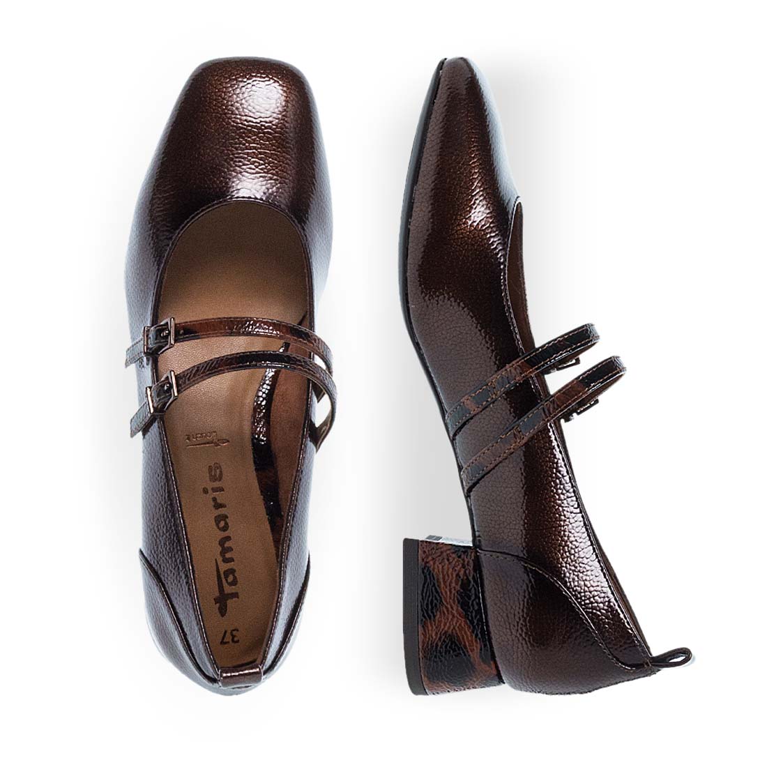 Women''s pumps by Tamaris. Brown Mary Jane heel with square toe and double straps, stylish and stable.
