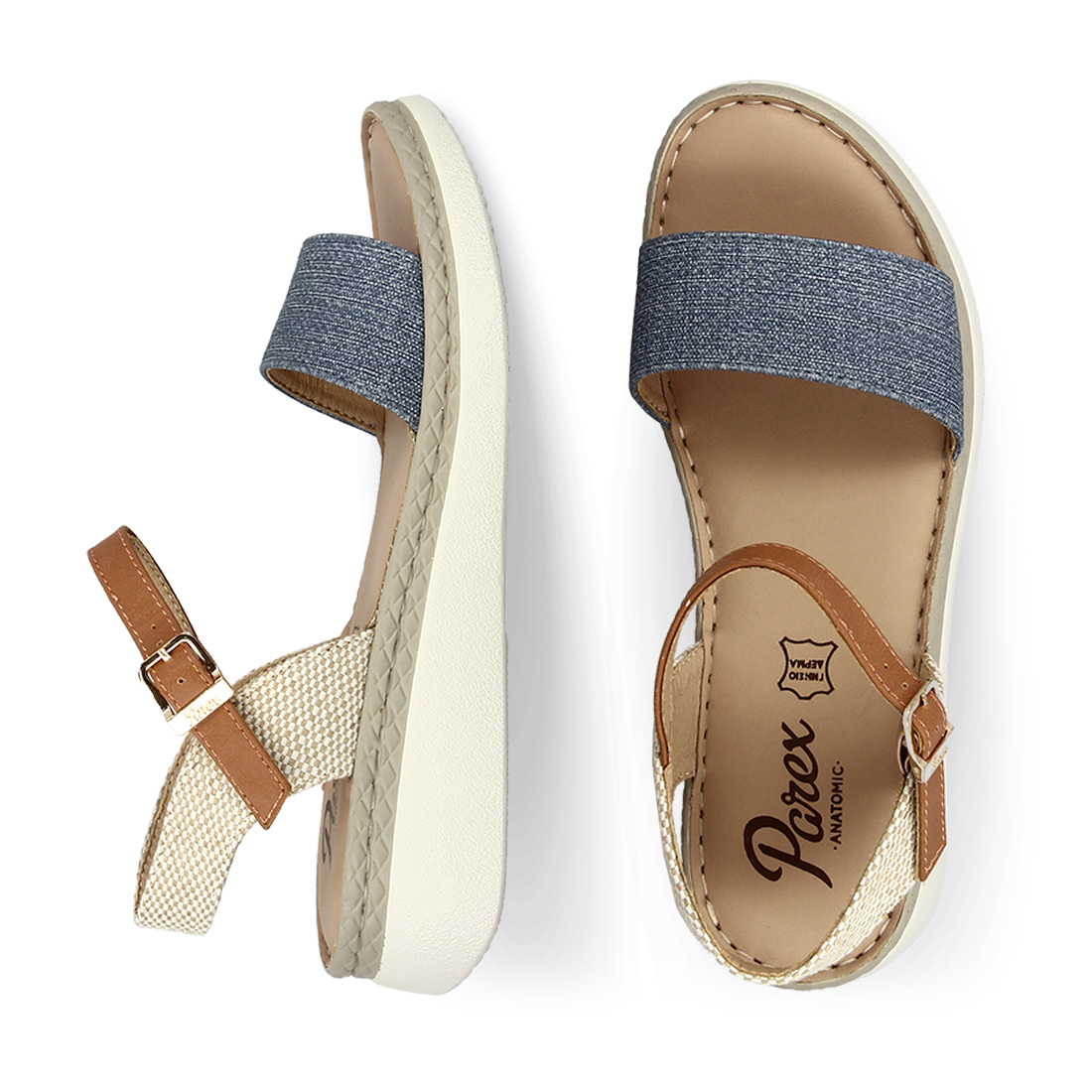 Women''s comfortable sandals Parex. Perfect combination of comfort and style are these women''s comfort sandals by Parex. Buckle strap fastening at the ankle and strap at the upper. Soft leather footbed and platform sole for steady steps. Excellent combination of materials and colors. Women''s sandals by comfort collection of Parex available in beige, blue and black color. Premium quality eco leather.
