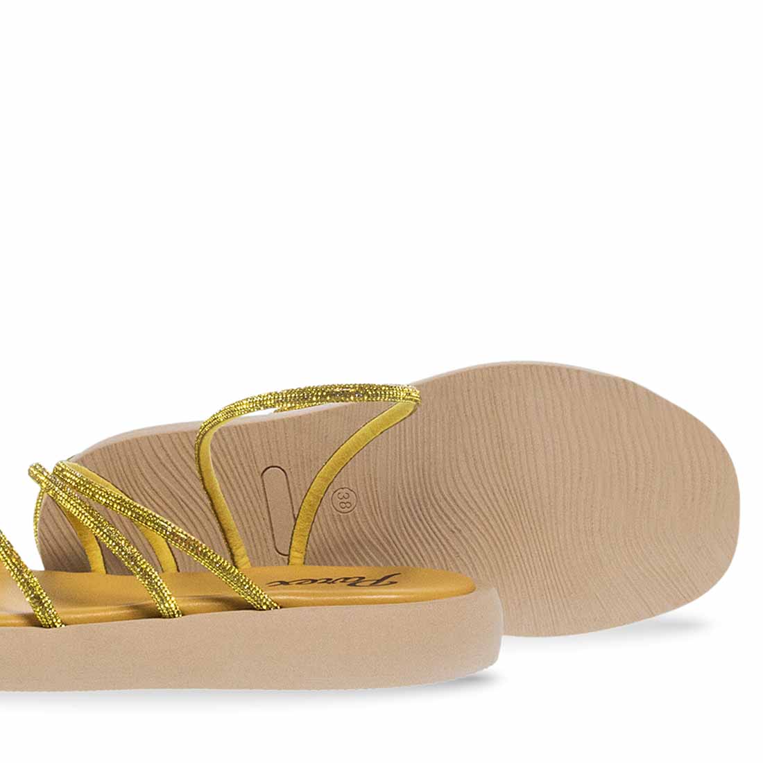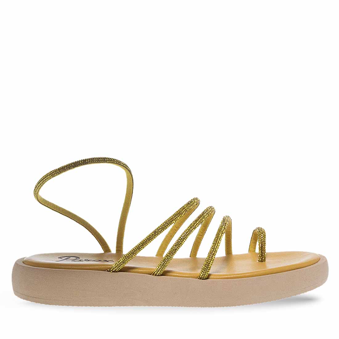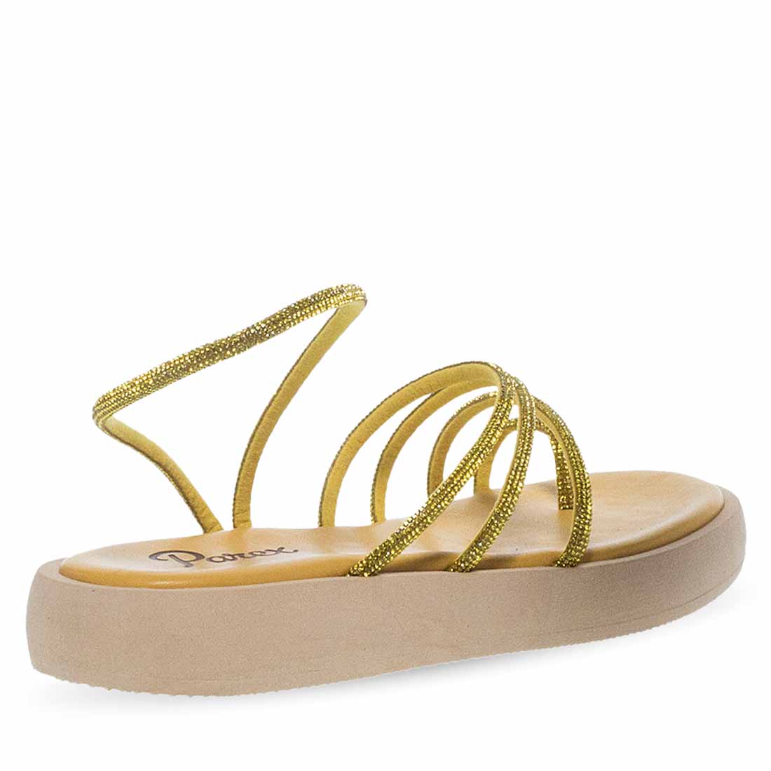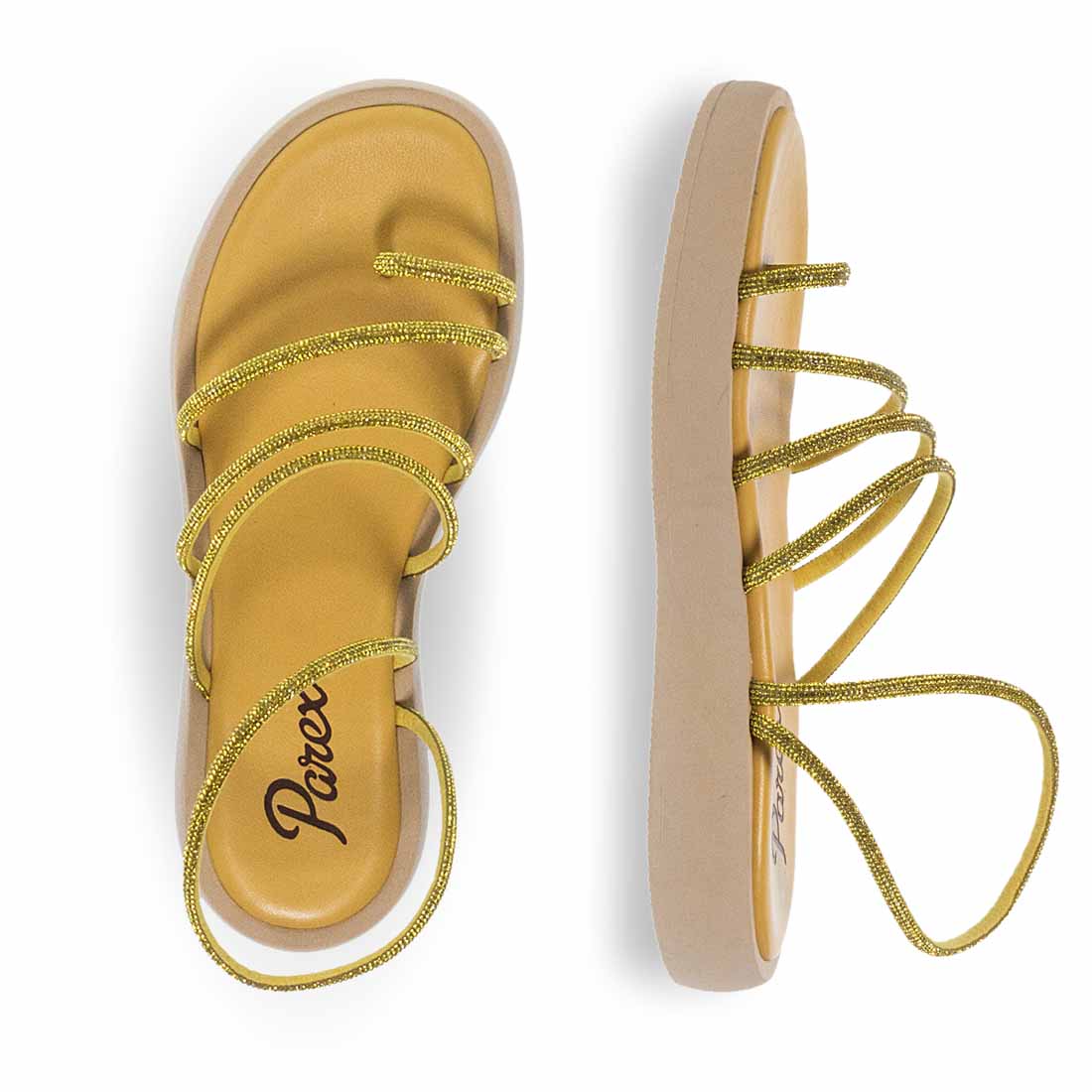 Women''s sandals by Parex. Stand out in your everyday style with these monochrome rhinestone sandals by Parex. They have rhinestone straps on the upper. They have an extremely soft footbed and a flat sole. Available in trendy colors that you can combine with your entire wardrobe. These rhinestone leather sandals will elevate any look. Available in black, orange, yellow, purple, copper and steel color made of excellent quality eco leather.