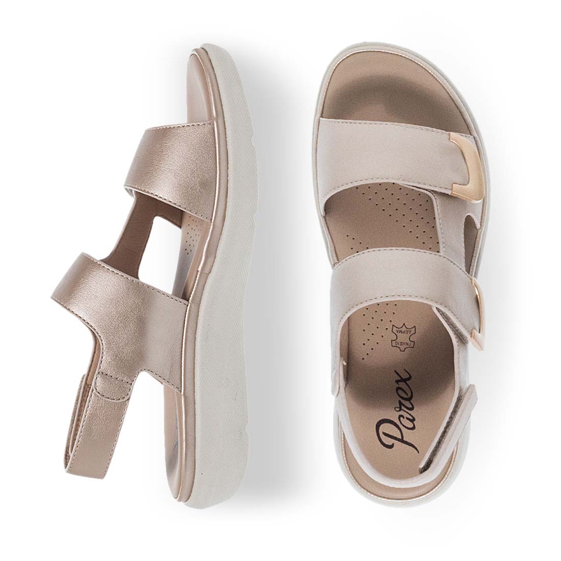 Step up your looks with these chic and comfortable sandals by Parex. Velcro closure. Flexible non slip sole. Leather insole. Ideal to use day to night.