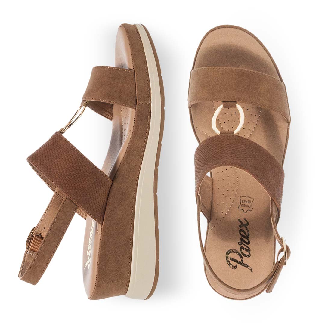 Comfortable sandals by Parex. Low platform heel. Buckle strap fastening. Very soft insole for comfortable steps. Ideal to use day to night. Leather insole.