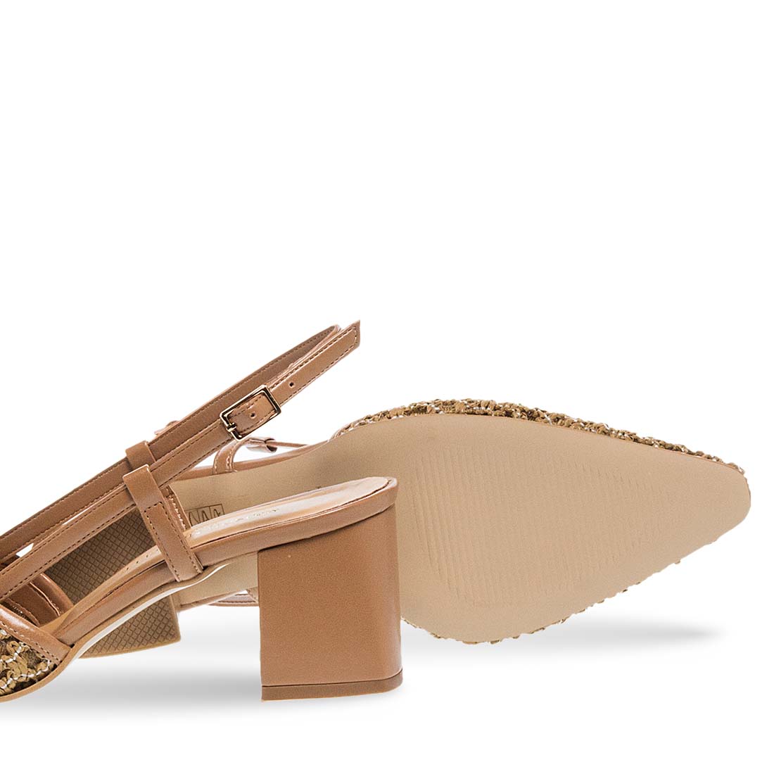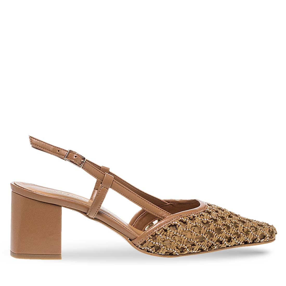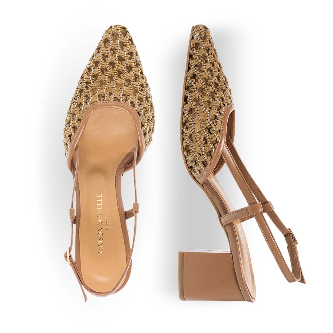 Women''s heeled sandals Maison Minrelle. Modern elegance made easy. This slingback pump features a chunky heel and textured woven upper for bold yet wearable everyday glam.